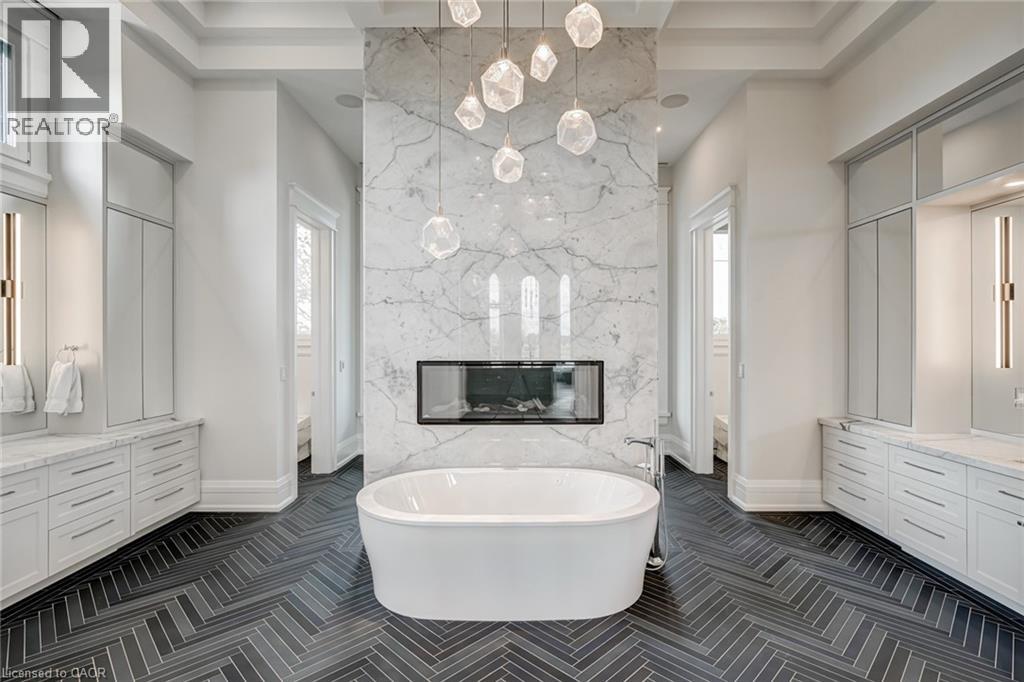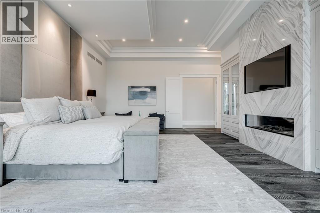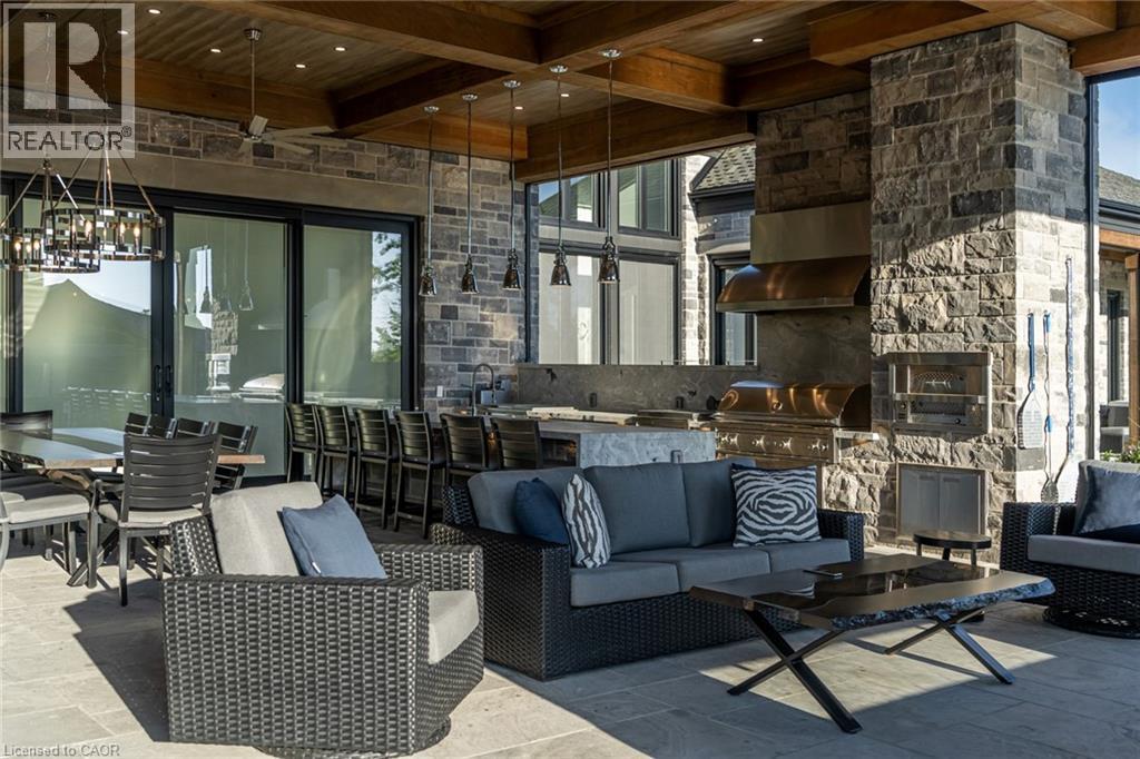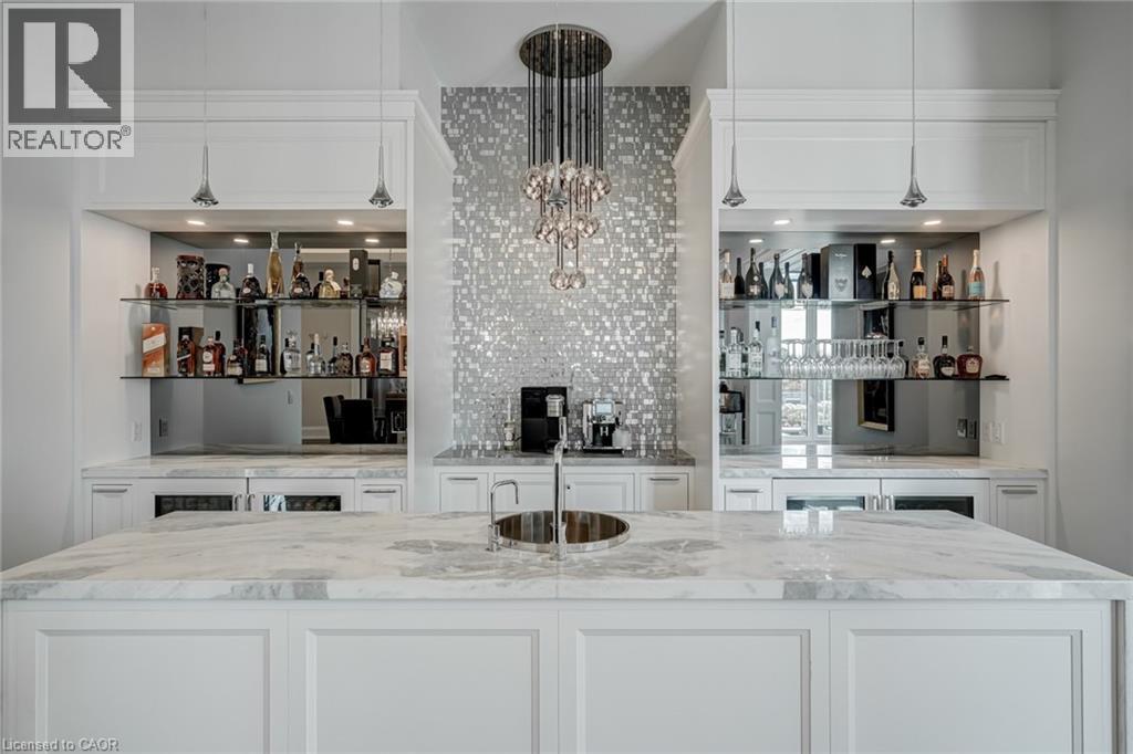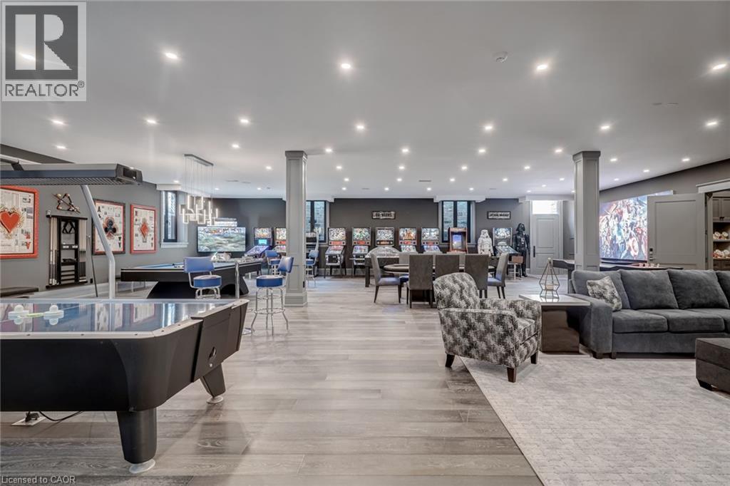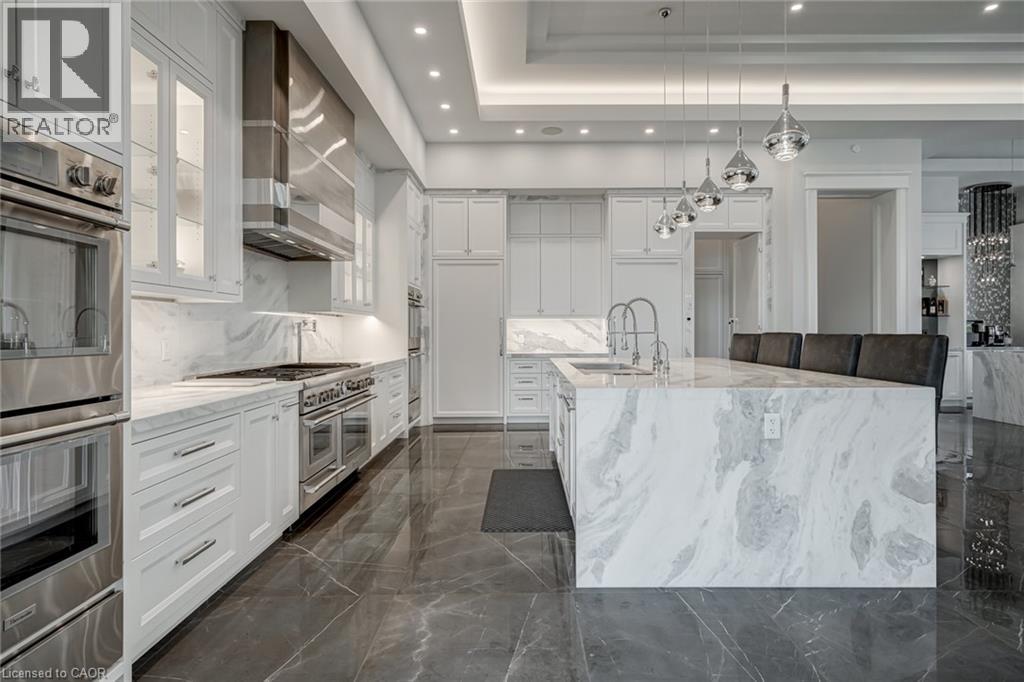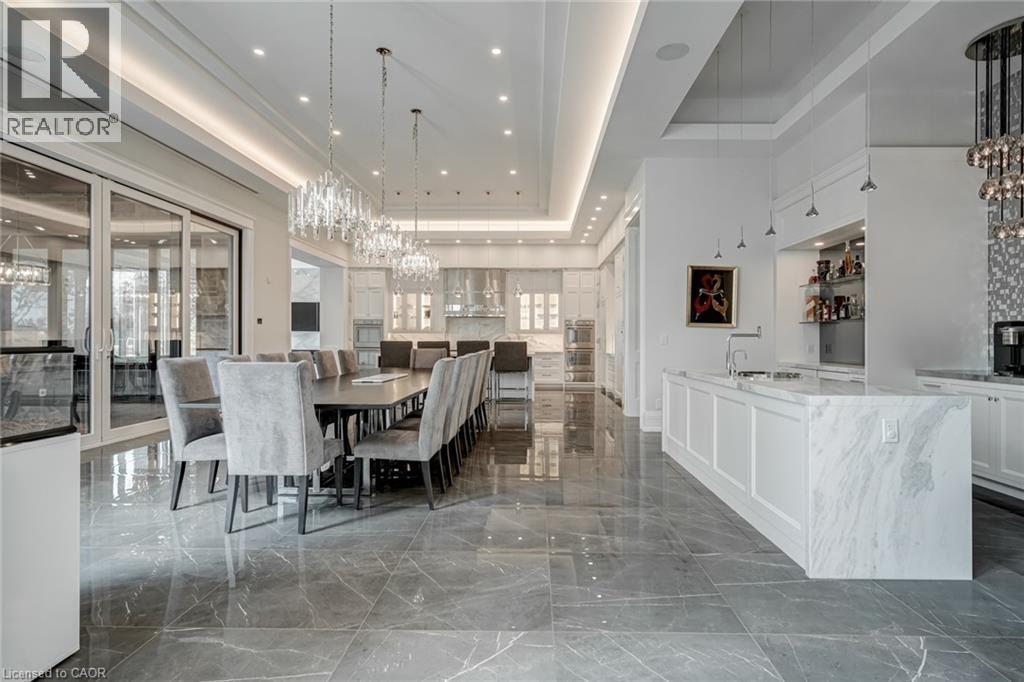 Set amidst a 5.2-acre estate, this extraordinary 32,000+ sq ft mansion offers unparalleled luxury and privacy. The gated and secured property features a stunning 1/3-acre aerated pond leading to a sprawling contemporary bungalow with lofted in-law quarters and a 5,210 sq ft detached garage with lounge, wash bay, and private gas pump—ideal for car enthusiasts.Surrounded by serene countryside, yet minutes from the heart of Ancaster, the renowned Hamilton Golf & Country Club, and Highway 403, offering both seclusion and convenience. Inside, every room showcases soaring 14 to 18-foot custom moulded ceilings, 32-inch porcelain flooring, and the highest quality materials and craftsmanship. The state-of-the-art home features whole-home automation by Control4. Spacious living areas feature custom granite walls with Town & Country fireplaces. A gourmet kitchen is equipped with top-tier appliances, including Sub-Zero, Thermador, and Miele. The luxurious lanai is perfect for entertaining, with heated Eramosa flagstone, a full outdoor kitchen, 72” Woods gas fireplace, and phantom screens. The opulent primary suite includes a private patio with hot tub and an expansive dressing room. The ensuite features heated herringbone floors, a soaker tub with fireplace, towel warmer drawers and a digital rain shower. The opposite wing offers three additional bedroom suites, each with walk-in closets and ensuites. A Cambridge elevator provides access to the entertainer’s dream basement, with a party room, full bar, professional gym with sauna and steam shower, games room, and a state-of-the-art home theatre. This 24-seat Dolby Atmos theatre features a 254-inch screen, 24-foot ceiling height, and a Kaleidoscope movie server for the ultimate cinematic experience. Outdoor amenities include a 35’ x 75’ heated pool, a 14-person hot tub, and an entertainment cabana with a media area and hosting bar. A regulation-size sports court and a children’s playground complete this family-friendly estate. (70212216)