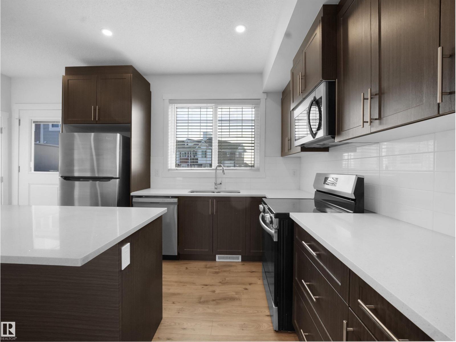 Stunning corner unit townhouse in the highly desirable community of Crystalina Nera! This well-maintained home offers 3 spacious bedrooms and 2.5 bathrooms. The bright open-concept layout features a contemporary kitchen with modern cabinetry, quality countertops, and ample storage, seamlessly flowing into spacious dining and living areas filled with natural light—ideal for relaxing or entertaining. Enjoy the large private balcony, perfect for morning coffee or summer evenings. A double attached garage provides secure parking and extra storage. Located with quick access to Anthony Henday Drive and close to schools, shopping, parks, trails, and transit, this is a must-see opportunity in a vibrant, growing community. Perfect for first-time buyers, investors, or downsizers, this beautiful home offers modern design, comfort, and convenience. (33879440)