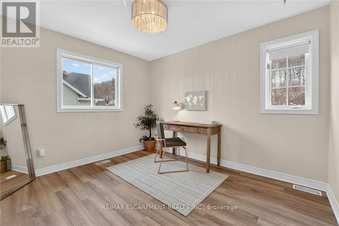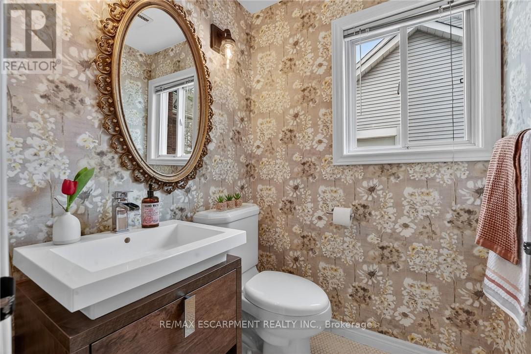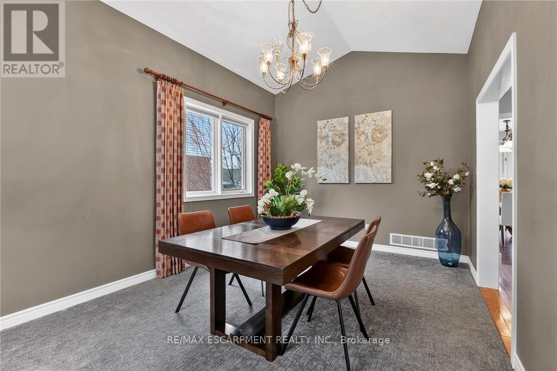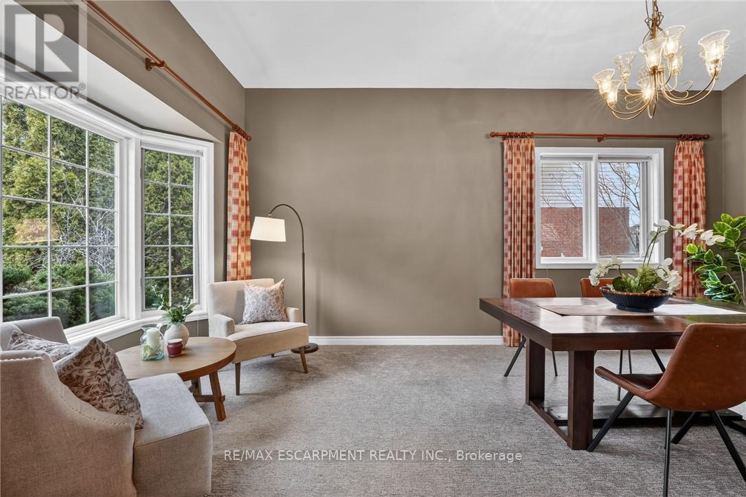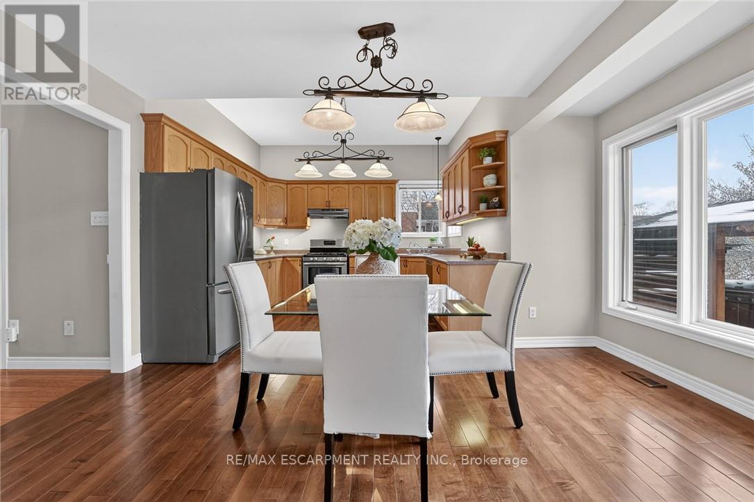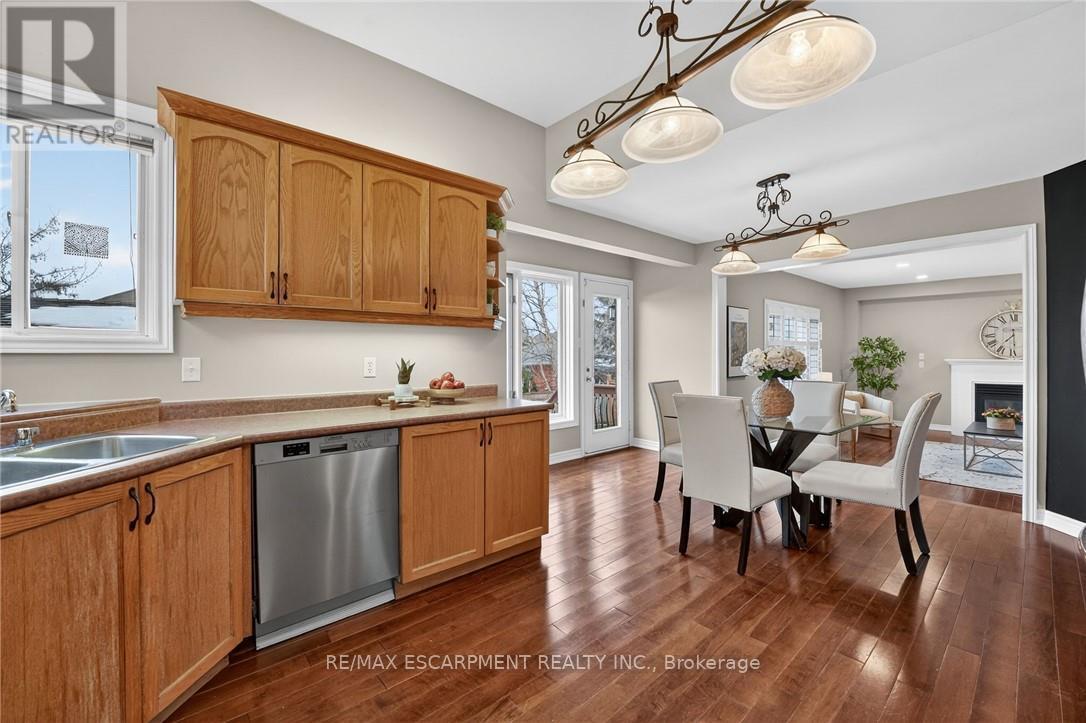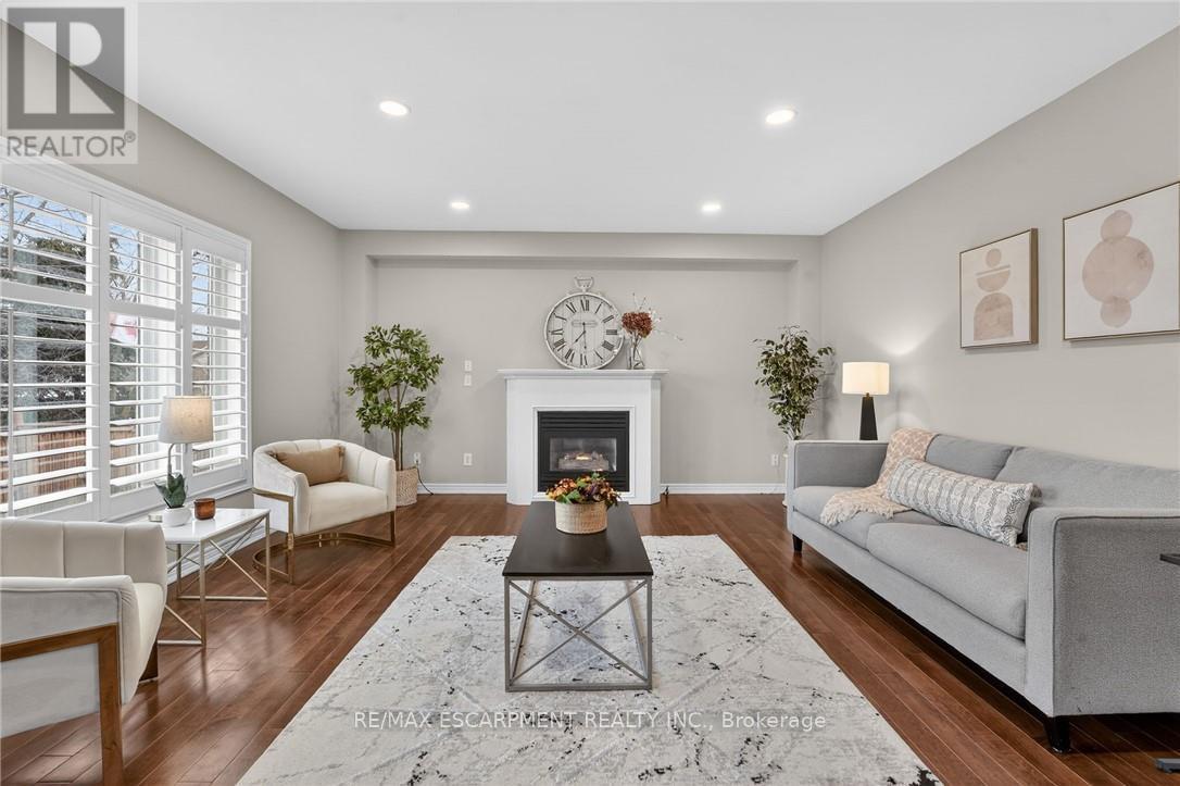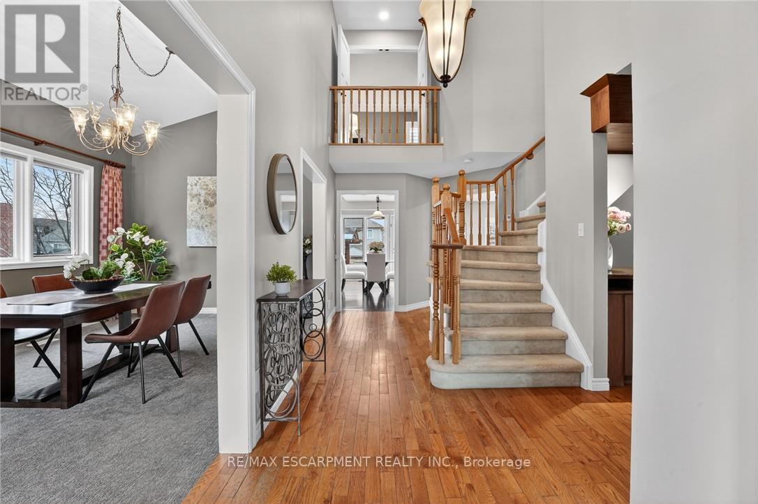 This home sits at the foot of the Niagara Escarpment in Dorchester Estates-one of Grimsby's most popular neighbourhoods. This well-kept two-storey home has four bedrooms, three and a half bathrooms, and over 3,100 square feet of finished space, giving a growing family plenty of room to settle in for the long haul. The main floor is predominately hardwood flooring, with a sunken living room that features a spacious gas fireplace and new windows. The carpeted dining and sitting room has a soaring vaulted ceiling and looks out toward the Escarpment. The eat-in kitchen has stainless appliances, oak cabinetry, and a garden door that opens onto a large back deck with a gazebo-great for summer get-togethers and family fun. Upstairs, the primary suite has a walk-in closet and private ensuite, as well as two additional bedrooms and a 4-piece bathroom. The fully finished basement gives you a bunch of options whether you need a rec room, guest space, or a home office. Outside, the double garage, concrete driveway, and stamped concrete walkways give the exterior a clean, polished feel. The street is quiet and family-friendly, with the West Lincoln Memorial Hospital, schools, shopping, and the QEW all close by. This home is the perfect spot for your family to call home for a very long time. Note: some photos have been virtually staged. (42229090)