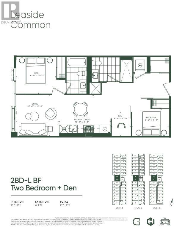 PRICE IMPROVEMENT!! Please note that photos shown are from a previous listing and the unit is currently unfurnished. Refined Living At Leaside Common, A Mid-Rise Boutique Building That Truly Embodies Leaside's Charm With Its Striking Two-Toned Exterior Brick Design. Deeply Connected To The Essence Of This Highly Coveted Community, Leaside Common Offers A Warm And Inviting Atmosphere, Surrounded By Some Of The City's Most Sought-After Neighbourhoods. This Functional Split Two-Bedroom + Den and Two Full Bathroom Suite Boasts 9-Ft Ceilings With West Exposure.Filling The Space With Natural Light. Step Outside, And You're Instantly Immersed In All The Liveliness Of Leaside, With Amazing Local Restaurants, Cozy Cafes, And Beloved Mom-And-Pop Shops Lining Bayview Avenue-All Just Moments From Your Door. Transit Is Effortless, With The Brand-New LRT Right Across The Street, Ensuring Seamless Access To The Rest Of The City. For Culinary Enthusiasts, Gas Cooktops Elevate The Home Cooking Experience. This Is A Rare Opportunity To Live In A Place Where Boutique Elegance, Community Spirit, And Urban Convenience Come Together Perfectly! Appointments Available To Tour Completed Suite! (42229271)