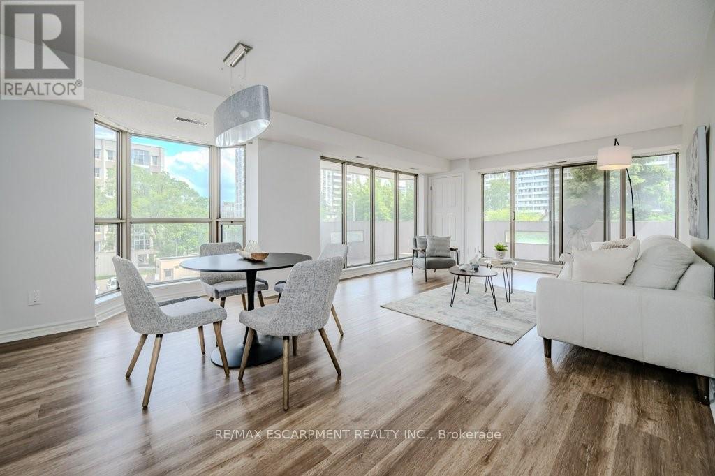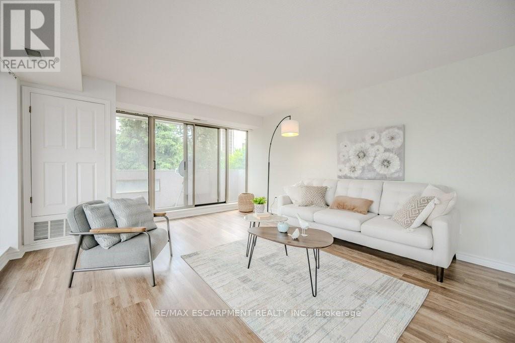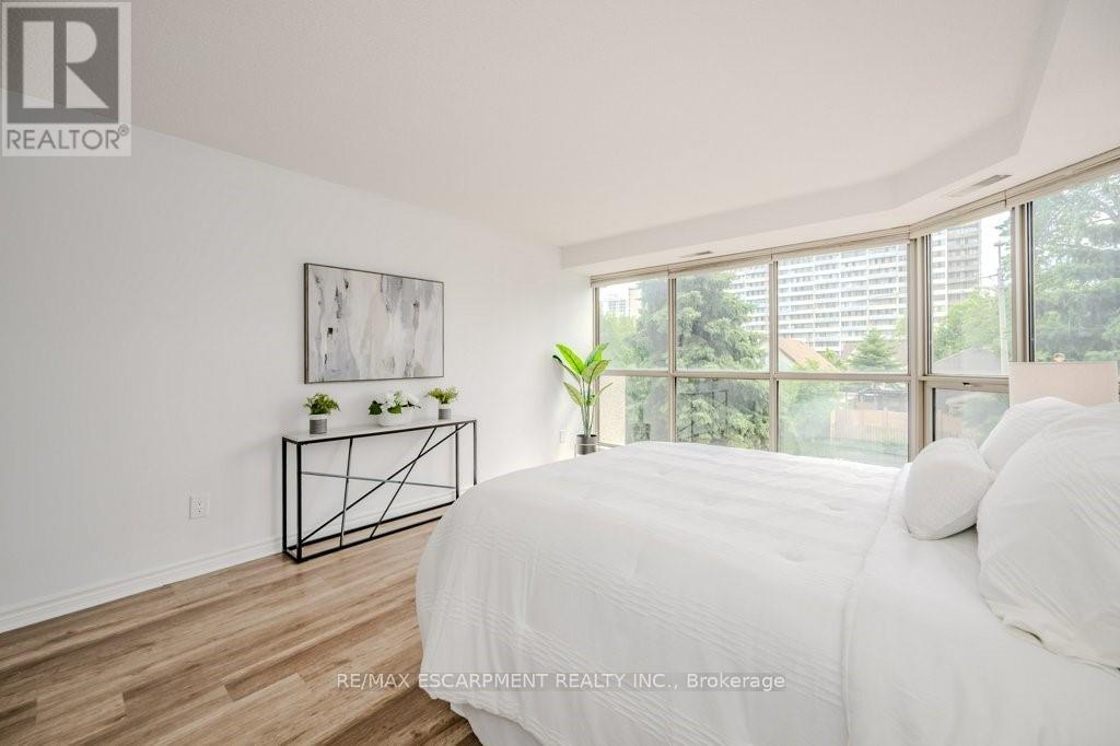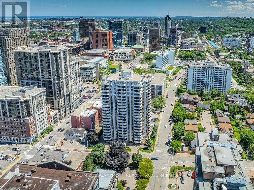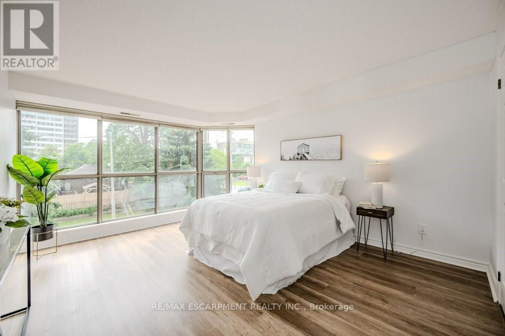 Welcome home to luxury living, Hamilton's Bently building offers prestige and comfort. This unit has a wraparound balcony offering views to the south east and west, open living - dining area, eat in kitchen with new countertops and updated cabinetry. Large bedrooms, walk-in closets, en suite laundry, freshly updated kitchen, flooring and baths. (42229436)