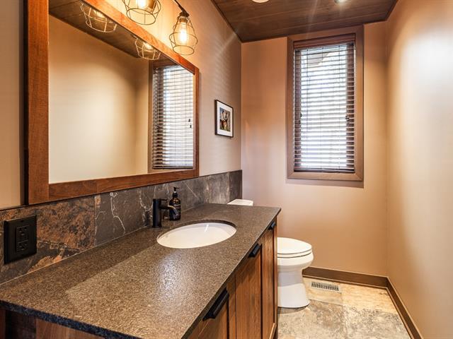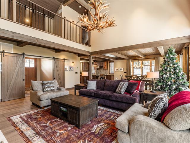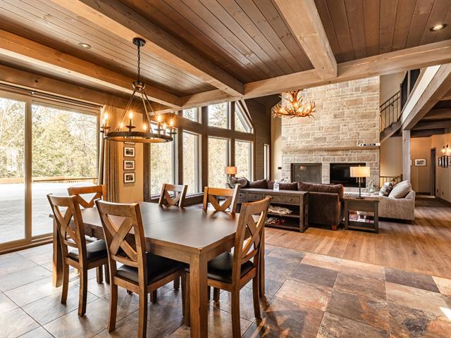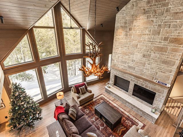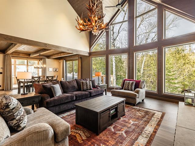 Built in 2022 in the heart of Morin-Heights, this exceptional Laurentian retreat blends privacy, modern refinement, and seamless intergenerational living. Surrounded by mature trees and panoramic mountain views, it offers a true 360° connection to nature through expansive windows that flood the home with light. Soaring ceilings, clean lines, and an airy open layout create calm sophistication. Multiple living quarters provide generous privacy while preserving effortless flow--an elegant sanctuary of space, light, and timeless beauty. (45198712)