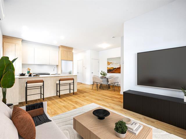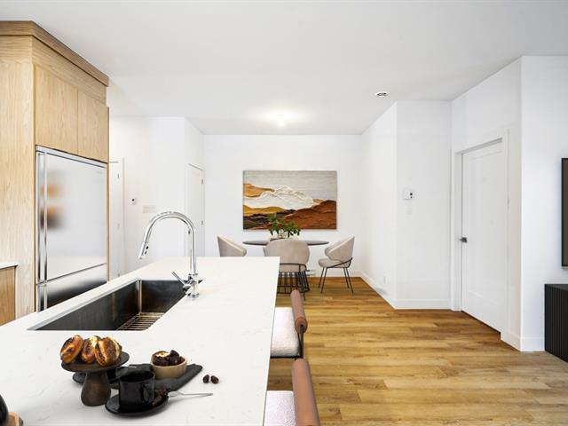 Cet appartement offre une parfaite harmonie entre design contemporain et fonctionnalité. Son aire ouverte lumineuse met en valeur des matériaux de qualité, des finitions soignées, une insonorisation supérieure et un éclairage réfléchi, créant une ambiance élégante et accueillante. La cuisine moderne avec îlot central, comptoirs et dosseret de quartz, hotte encastrée et robinetterie haut de gamme invite à la convivialité. La chambre principale, spacieuse et bien positionnée, assure intimité et confort. Un espace de rangement privé intégré au balcon complète le tout. Une occasion unique de vivre dans un milieu pensé pour votre bien-être. (50029985)