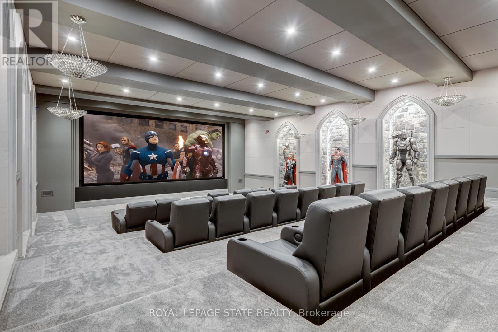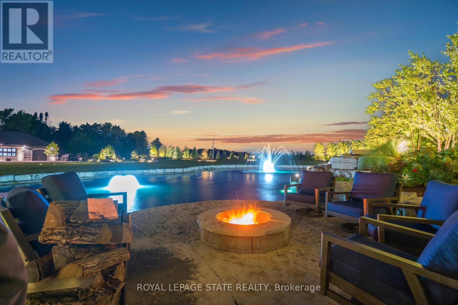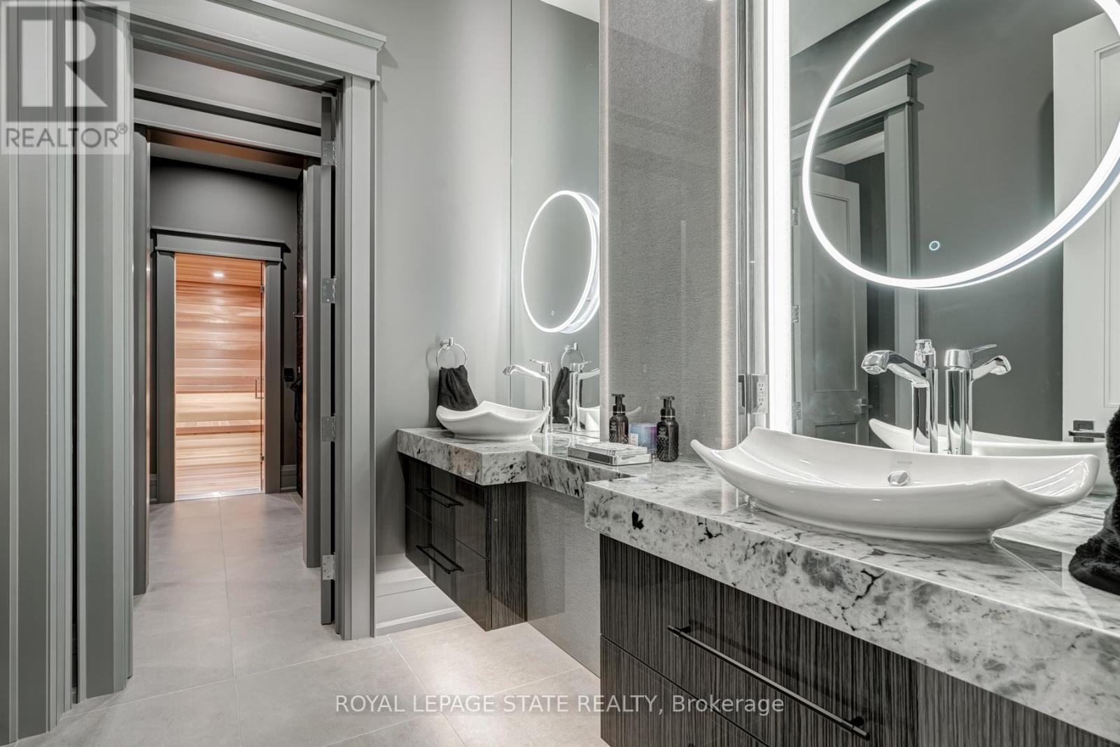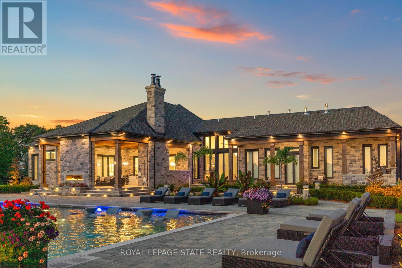 Set amidst a 5.2-acre estate, this extraordinary 32,000+ sq ft mansion offers unparalleled luxury and privacy. The gated and secured property features a stunning 1/3-acre aerated pond leading to a sprawling contemporary bungalow with lofted in-law quarters and a 5,210 sq ft detached garage with lounge, wash bay, and private gas pump-ideal for car enthusiasts.Surrounded by serene countryside, yet minutes from the heart of Ancaster, the renowned Hamilton Golf & Country Club, and Highway 403, offering both seclusion and convenience. Inside, every room showcases soaring 14 to 18-foot custom moulded ceilings, 32-inch porcelain flooring, and the highest quality materials and craftsmanship. The state-of-the-art home features whole-home automation by Control4. Spacious living areas feature custom granite walls with Town & Country fireplaces. A gourmet kitchen is equipped with top-tier appliances, including Sub-Zero, Thermador, and Miele. The luxurious lanai is perfect for entertaining, with heated Eramosa flagstone, a full outdoor kitchen, 72" Woods gas fireplace, and phantom screens. The opulent primary suite includes a private patio with hot tub and an expansive dressing room. The ensuite features heated herringbone floors, a soaker tub with fireplace, towel warmer drawers and a digital rain shower. The opposite wing offers three additional bedroom suites, each with walk-in closets and ensuites. A Cambridge elevator provides access to the entertainer's dream basement, with a party room, full bar, professional gym with sauna and steam shower, games room, and a state-of-the-art home theatre. This 24-seat Dolby Atmos theatre features a 254-inch screen, 24-foot ceiling height, and a Kaleidoscope movie server for the ultimate cinematic experience. Outdoor amenities include a 35' x 75' heated pool, a 14-person hot tub, and an entertainment cabana with a media area and hosting bar. A regulation-size sports court and a children's playground complete this family-friendly estate. (42229735)