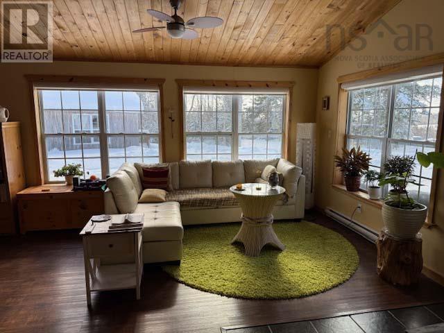 Fantastic two bedroom modern bungalow situated well back off the road on 1.5 private acres. Nicely forested property on quiet paved road within minutes to Scotsburn and just 15 minutes to Pictou. New Glasgow is within 20 minutes. Built in 2008 on an insulated concrete slab it has been extremely well-maintained and upgraded. It features an open concept design with vaulted pine ceiling, large south facing windows, den, or home office space, a well laid out kitchen and a mudroom entry. Its super insulated, heated with electric plus a newly installed heat pump and an efficient wood stove. Shows like new, move-in condition! Another popular feature is the newly installed metal roof. Systems include a drilled well , on-site septic, 220 amp electrical panel, a new generator, and fibre-optic high-speed Internet. Other features include a circular driveway, which was regraveled last year, nicely landscaped and a 15 x 12 wired, insulated and heated Bunkie with a sauna. There are two other outbuildings, including a tool shed and wood shed. All three accessory buildings also have metal roofs. This is a rare find! (232008294)