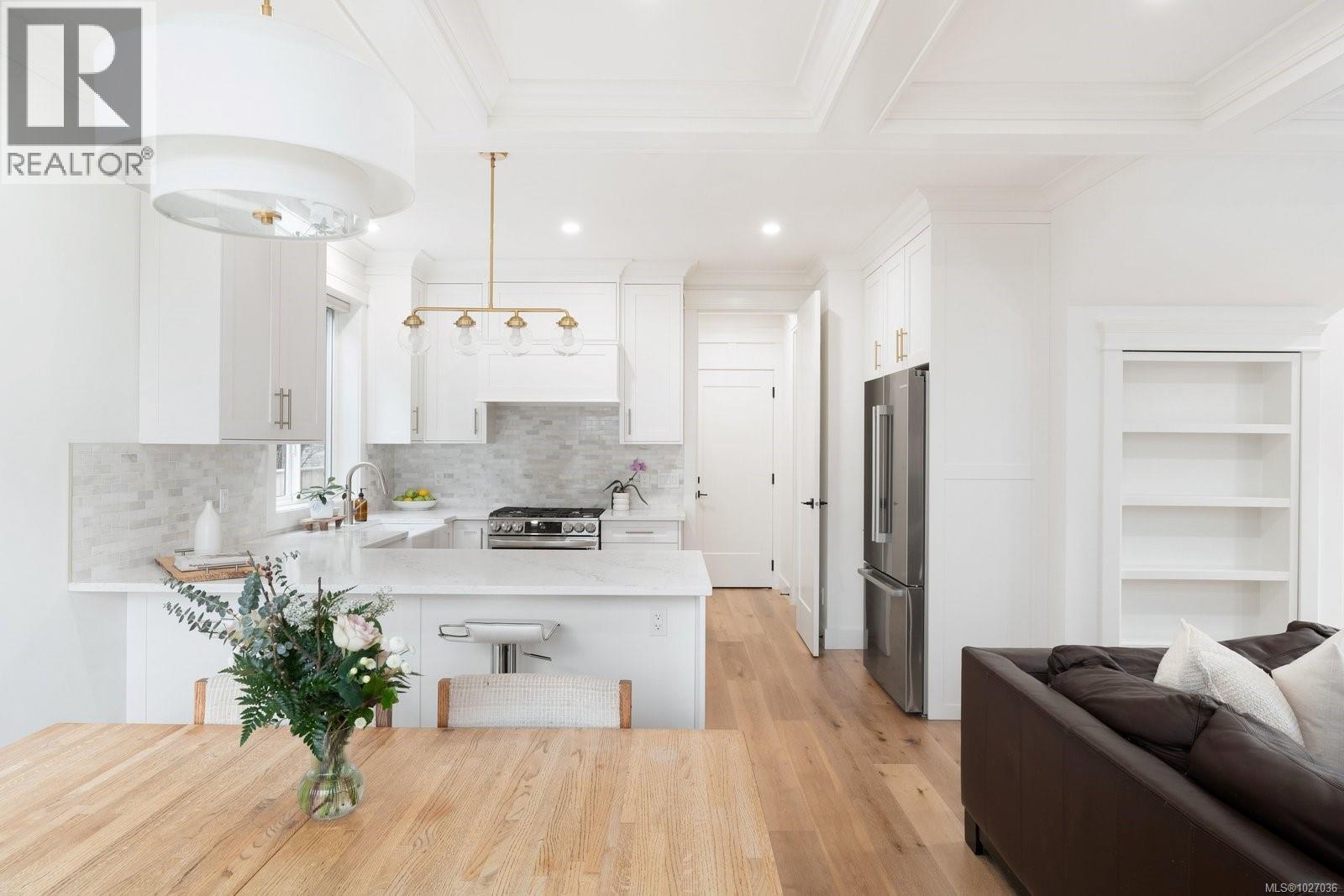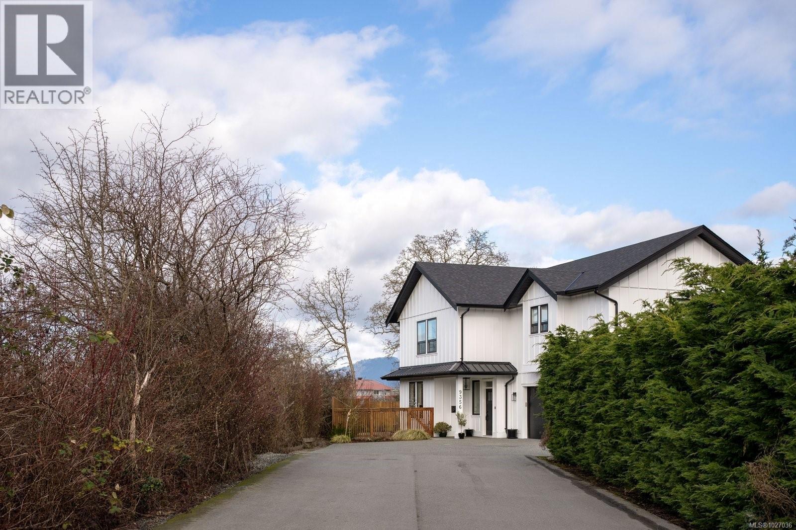 Welcome home to this stunning 2022 custom-built residence at 9356 East Saanich Road. Located at the very end of a quiet cul-de-sac of only 4 properties, its perfectly situated SW and private exposure allows natural light to flood into the home creating warmth and tranquility throughout the day. Thoughtfully designed and meticulously constructed, this impressive 4 bed+den, 4 bath home offers over 2,300 sq. ft. of refined living space, complemented by a large 540 sq/ft double garage/workspace. Every detail has been carefully curated, showcasing custom millwork, elegant picture rail moldings, coffered ceilings and timeless architectural elements that blend seamlessly with modern accents. At the heart of the home, the chef-inspired kitchen features premium appliances and a quartz island that opens to the living space w/gas fireplace—perfect for entertaining or gathering with family. Did I mention there is a legal 630 sq/ft, 1bed/1 bath, suite above the garage with a separate meter? Perfect as a mortgage helper, or for a nanny/guests. This tastefully landscaped property is low maintenance, and situated on a rare/expansive lot that offers unobstructed views from 3 sides that captures the most incredible sunsets the Island has to offer. The flat, sun-exposed, fully fenced front/side yard, with over 680 sq/ft of patio space is ideal for entertaining, gardening, pets and children. Ideally situated in a highly sought-after community known for its natural beauty, charm, young families and peaceful lifestyle. Conveniently located within walking distance to Roost Farm Bakery and just minutes from Sidney, this home also offers quick access to the airport, cycling/walking trails, and everyday amenities. This is a rare opportunity to enjoy the comforts of a newly constructed home on a premium lot in one of Vancouver Island’s most desirable communities. A property that truly balances luxury, lifestyle, and location. Book your showing today! (30432035)