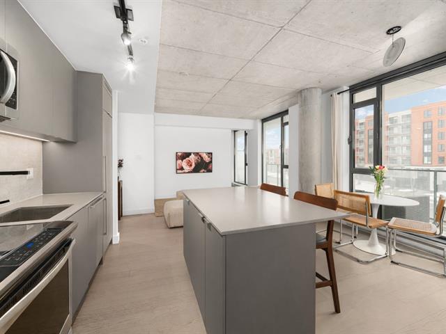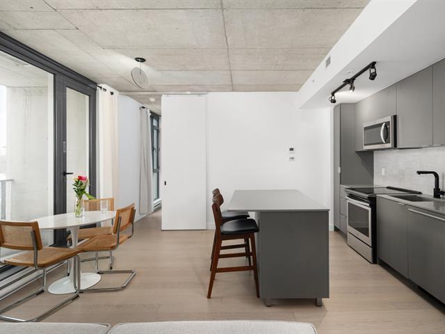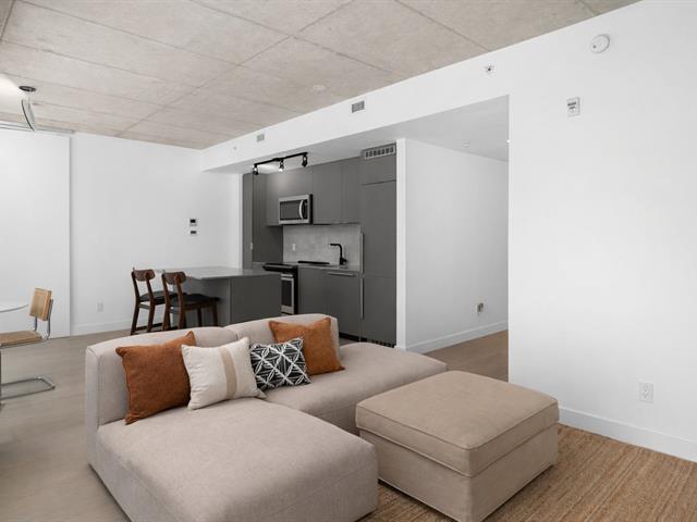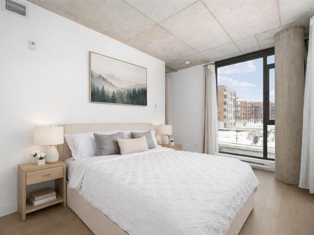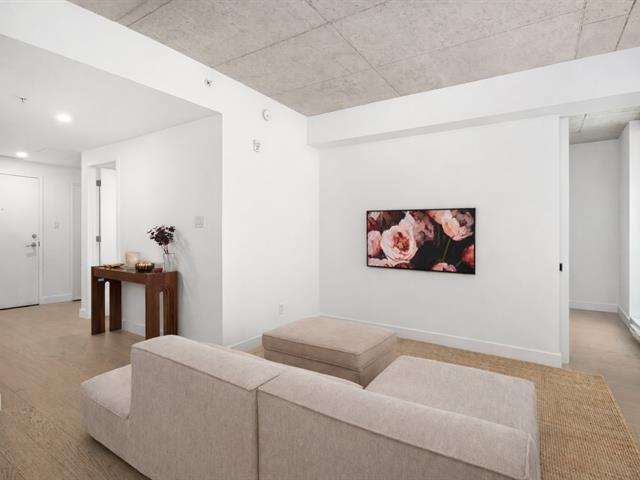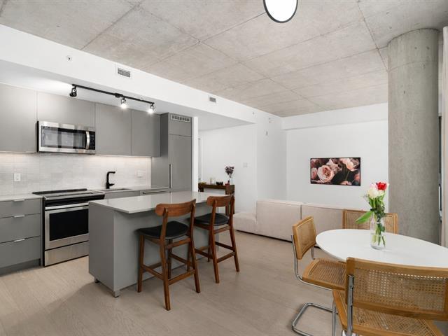 Stunning modern 2-bedroom condo located in the prestigious Cité Midtown project in Saint-Laurent West. Bright and open-concept, it features large windows, exposed concrete ceilings, a private balcony, and a spacious kitchen with a central island. Laundry facilities are discreetly integrated into the entrance storage area. Enjoy upscale common areas: a fully equipped gym and yoga studio, two private meeting rooms, and a heated outdoor pool. Strategically located near Royalmount, parks, shops, and public transportation, with quick access to major highways. (53600687)