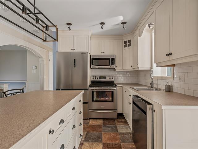 Propriété impeccable, clé en main, située dans le secteur prisé de Des Châtels. Emplacement stratégique et central, à proximité des écoles, des parcs, des transports et de tous les services. Rue paisible, sécuritaire et familiale, très recherchée. Division parfaitement pensée pour la vie de famille, offrant de vastes aires de vie lumineuses et accueillantes. Salon chaleureux avec foyer et superbe verrière baignée de lumière naturelle. Cour arrière intime, entièrement clôturée, avec piscine creusée pour profiter pleinement de la belle saison. Une occasion rare alliant confort, emplacement et qualité de vie. (54380945)