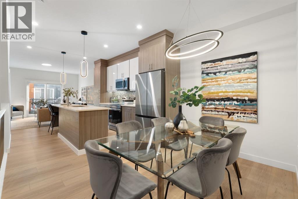 Welcome to this beautifully renovated and move-in ready 3-bedroom, 3 full bathroom + Den townhome offering over 1,800 sq ft of thoughtfully designed living space in the vibrant community of Skyview Ranch.Modern finishes shine throughout this stylish home. The open-concept main level features wide-plank flooring, oversized windows that flood the space with natural light, and a stunning kitchen complete with quartz countertops, stainless steel appliances, sleek cabinetry, a spacious island, and contemporary pendant lighting. The dining area flows seamlessly into the bright and inviting living room, creating the perfect setting for both everyday living and effortless entertaining.This level also offers a versatile third bedroom and full bathroom, ideal for guests or multi-generational living. Step out onto your private balcony and enjoy your morning coffee or evening unwind.Upstairs, the spacious primary retreat offers a private 4-piece ensuite and generous closet space. A second well-sized bedroom, full bathroom, and convenient upper-level laundry add comfort and functionality, while the bonus room provides the perfect flex space for a reading nook or additional lounge area.This home also includes a private lower-level office space, ideal for working from home or creating a quiet study area separate from the main living space. Additional features include a Brand New high-efficiency furnace, central air conditioning, triple-pane windows to help keep things comfortable year-round, an electric fireplace for cozy evenings, and durable vinyl plank flooring throughout. You’ll also appreciate the attached tandem garage parking for added everyday convenience.Located close to parks, playgrounds, schools, shopping, and walking paths, with easy access to major routes and the airport, this home delivers the perfect blend of modern comfort, efficiency, and accessibility.An exceptional opportunity for first-time buyers, professionals, or investors seeking stylish, turnkey liv ing in a thriving community. (31694013)