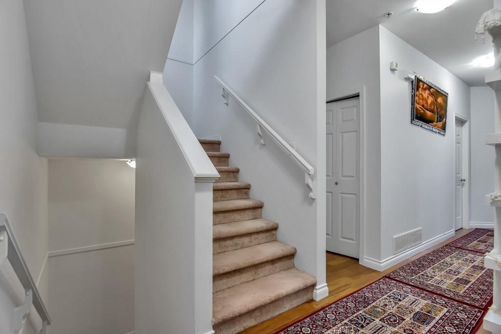 Rarely available! large 5 bed corner unit. Welcome to Cypress Ridge, executive townhouse quietly nestled in the Royal Heights area & surrounded by nature & trails & centrally located to all amenities. This home features 2617 sq.ft. open floorplan w/double garage & total 4 car parking. Open & bright end unit w/large windows, spacious rooms including master bed on main w/ensuite, over-sized shower & walk in closet. Living room has 9' ceiling, gas fireplace, French doors leading to the balcony w/ northern exposure & view of the mountains. Kitchen includes S/S appliances & lots of space w/ newer cabinetry. The Complex features a brand new roof already paid for. A beautiful private backyard & patio space. (32498304)