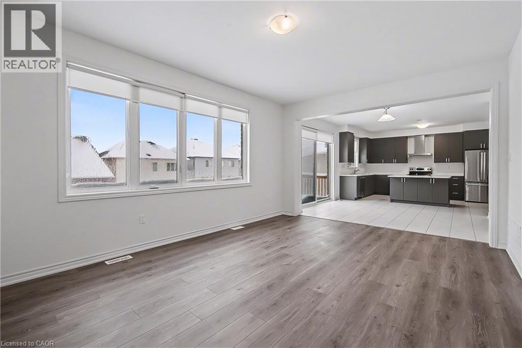Set in the charming community of Fergus, this impressive 3,000+ sq ft two-storey residence offers a rare combination of space, design, and convenience. Less than 30 minutes to the University of Guelph, approximately 35 minutes to the University of Waterloo, and about 25 minutes to the Guelph Central GO Station. An ideal opportunity for families, professionals, and commuters seeking refined living outside the city. From the covered front porch step into a grand foyer that immediately impresses with soaring ceilings and an open, airy staircase overlooking the elegant dining and living area. The expansive open-concept main floor is thoughtfully designed for both everyday living and hosting, featuring an upgraded kitchen with centre island, seamlessly connected to a spacious family room with gas fireplace. Wide walkout sliders lead to the deck, creating an effortless indoor-outdoor lifestyle. The main level is completed by a convenient powder room, mudroom/laundry room, and direct access to the garage-where functionality meets upscale design. Upstairs, the home offers four generously sized bedrooms, three with private ensuite bathrooms. The spacious primary retreat features a his and her walk-in closets and a luxurious five-piece spa-inspired ensuite, providing a true private escape. The walkout basement features a separate entrance and presents excellent potential for an in-law or multi-generational living setup, with rough-in plumbing for a bathroom, large windows, and an open layout ready to be customized to suit your needs. A remarkable home that balances elegance, comfort, and location. This is a standout opportunity to own a truly impressive property in one of the most desirable neighbourhood in Fergus. (70213063)
