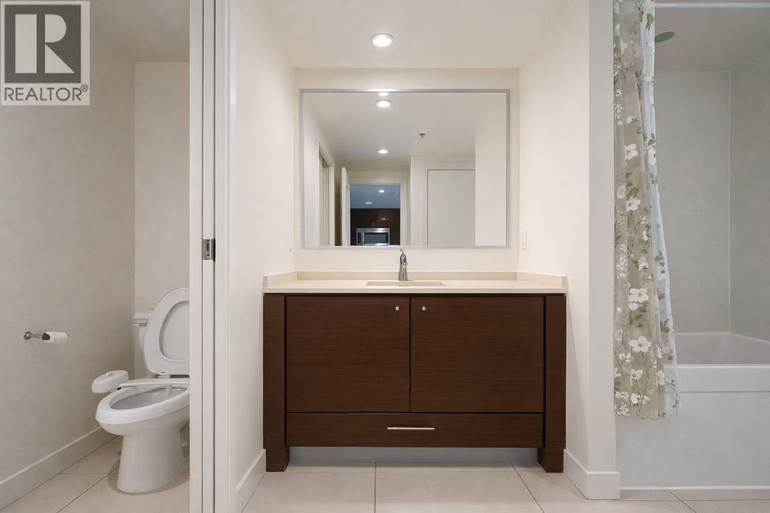 Located in the prestigious "Lotus" by Cressey; enjoy this quiet, comfortable, upper unit, one bed, one bath, open plan home with generous balcony, great for entertaining. Chef's kitchen with granite counter tops, gas range, s.s. appliances, warm laminate flooring, deep soak-er tub, beautiful floor to ceiling windows facing west with some mountain view to the north from the balcony. Geothermal heating provides perfect room temperatures and layout is Feng Shui approved. Walk to transit, shopping, coffee shops & great dining. Storage locker, one secure double gated parking, pets & rentals allowed. Enjoy the best amenities in Richmond: large indoor pool/hot tub/gym/sauna/steam room & 3 party rooms with kitchens. (32499235)