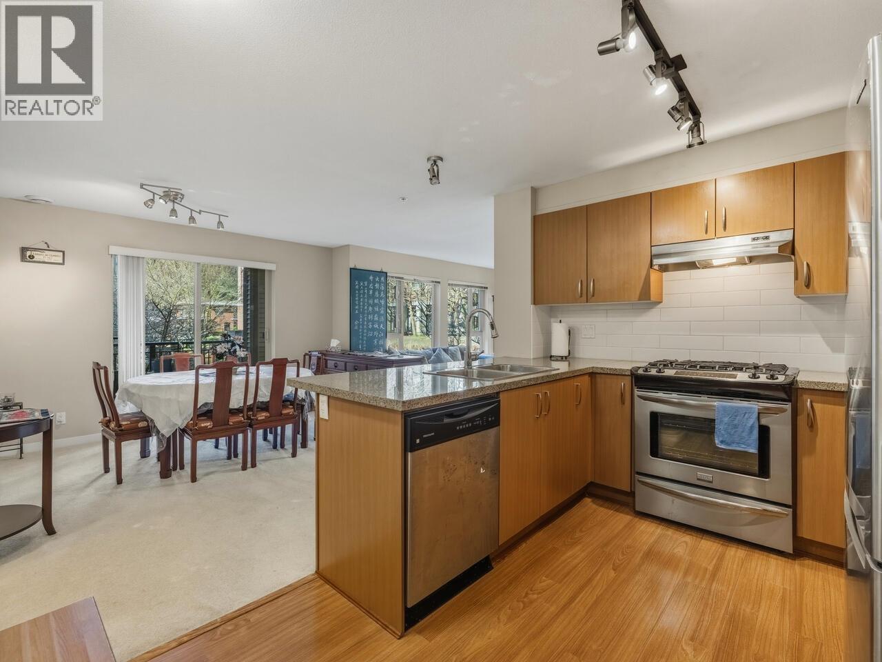 This wonderfully maintained home is neat as a pin and ready for you the fussiest of buyers. Two large bright bedrooms both with views onto a green common area with gardens , blossom trees, shrubbery and gardens. Open floor plan with abundance of windows. Kitchen has newer stainless appliances, loads of cupboard space and a breakfast bar. The large bright living room opens onto the dinning room creating a very spacious open concept feel. Two full bathrooms. A large master bedroom walk in closet 8'7" X 4'5". One parking stall and two lockers. One on the same floor as the suite. Enjoy the 18000sf of resort-style amenities including fitness center, indoor sports court, outdoor pool, guest suites & more. Conveniently located, just a short walk from SkyTrain, Coquitlam Centre, parks & schools. (32499283)
