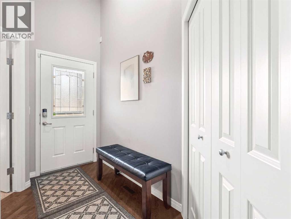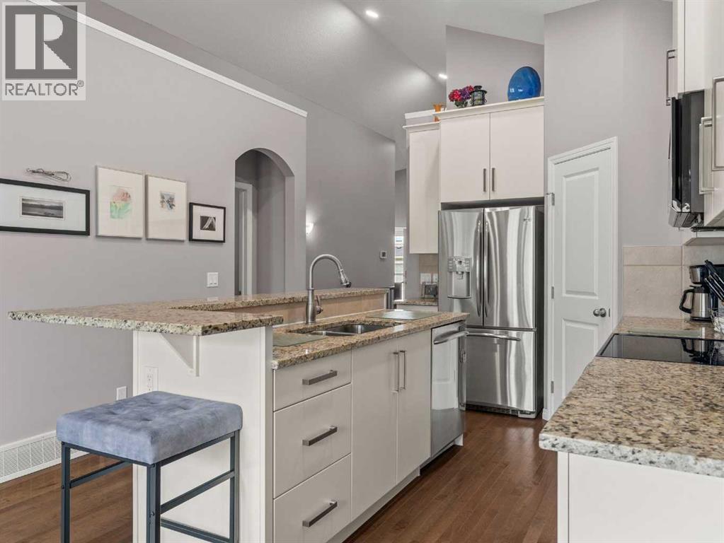 NO CONDO FEES! Welcome to this meticulously maintained 2 bed/2 bath semi-detached bungalow in one of Airdrie’s most sought-after communities! One block from the picturesque canals and walking trails in Bayside, this location offers the perfect balance of peaceful surroundings and everyday convenience. Step inside to a bright, open concept layout featuring granite countertops, stainless steel appliances, and ample workspace which flows seamlessly into the spacious living area. Soaring ceilings and a custom fireplace make this the perfect space to both relax and entertain. The generous primary retreat includes a full ensuite and walk-in closet, while the second bedroom provides flexibility for guests, a home office, or hobby space. Enjoy outdoor living without the maintenance. The thoughtfully landscaped yard with mature trees creates privacy and charm, while upgraded patio doors invite natural light inside. Recent updates add peace of mind and value, including new carpet, fresh paint, washer and dryer (within the last two years), new smoke detectors throughout, privacy glass window in the living room, and central A/C. The double garage offers secure parking and additional storage while the unfinished basement is a blank canvas ready for your vision. Whether you’re downsizing or stepping into homeownership, this property delivers comfort, quality, and an unbeatable location close to nature and minutes from amenities. Move-in ready. Exceptional value. PRICED UNDER ASSESSED TAX VALUE! Call your favorite realtor to view today! (31694459)
