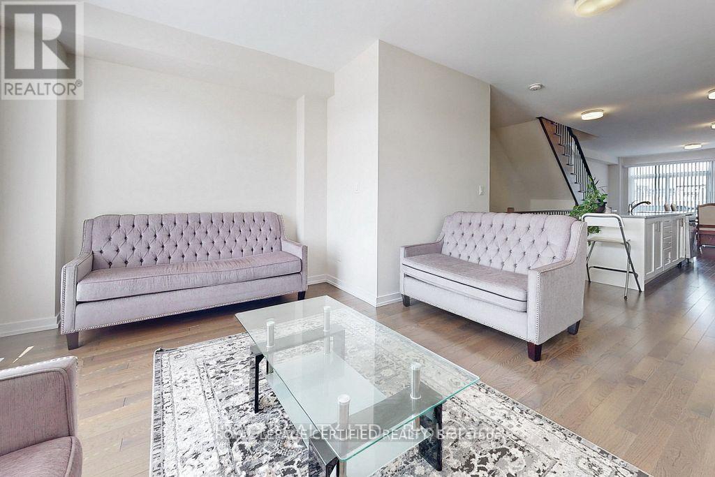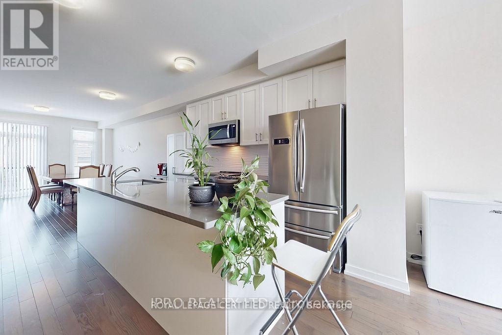 This gorgeous 1,990 sq. ft. townhome perfectly blends modern design with practicality and functionality, featuring three spacious bedrooms plus a dedicated main-floor home office and four bathrooms. The bright, open-concept layout is enhanced by thousands in upgrades, including elegant hardwood stairs and flooring, 9-foot ceilings on the second level, and a beautiful large kitchen equipped with sleek quartz countertops, stainless steel appliances, and ample cabinetry. Conveniently located within walking distance to a vibrant plaza featuring Tim Hortons, banks, restaurants, a Dollar Tree, and a gym, the home also offers an ideal commuter location with a short drive to both Highway 407 to the north and Highway 401 to the south. (42230569)