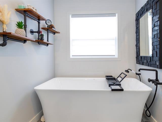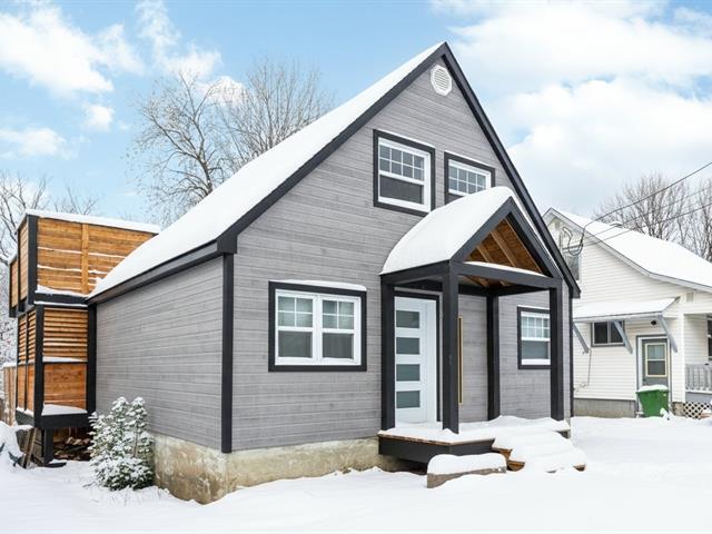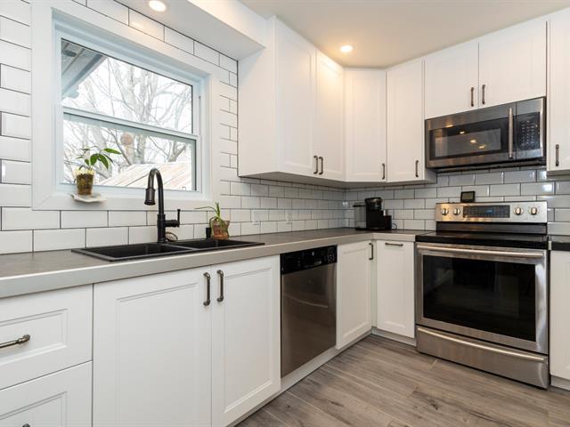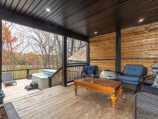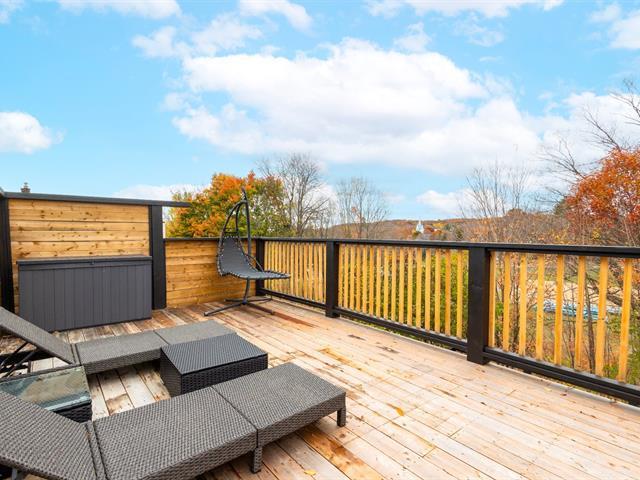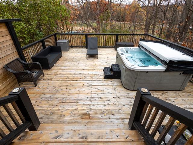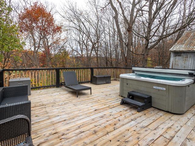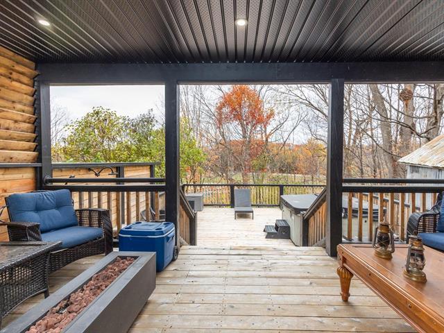 Move-in ready home with terraces and spa, just 1 hour from Montreal! Charming 2-bedroom property, featuring a spacious primary bedroom with direct access to two large terraces overlooking Brownsburg Park, including a garden-level one with spa and outdoor shower -- a true oasis! Extensive and significant renovations such as electrical, plumbing, modern insulation, windows, brand-new doors, new kitchen and bathroom, with heated floors for guaranteed comfort. Only 8--10 minutes from Highway 50 and downtown Lachute, close to schools, restaurants, and amenities. Located in a quiet, family-friendly area -- perfect for a first-time buyer. (42138777)