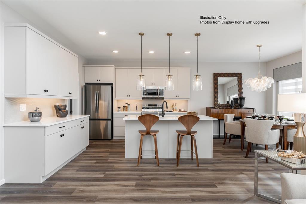 1R//Winnipeg/Home to be Built! Welcome to the Hazel B to be built in Praire Pointe. At 1859 sq ft, this home has 9' ceilings on main floor, a main floor bedroom & full bathroom, plus the ceiling above the Great Room extends to the second floor providing an abundance of natural light to spread throughout the home. The Kitchen has Quartz, a walk-in pantry, which can easily be upgraded to a spice kitchen, 2 walls of upper & lower cabinets plus a 6.5' island. The spacious dining room has a garden dr to the rear yard. The laundry room is conveniently located on the 2nd floor close to the bedrooms. Note: there is No Escalation clause when building this home. All attached photos are from display home with same interior layout. Display home photos and video show upgraded items. (232008897)