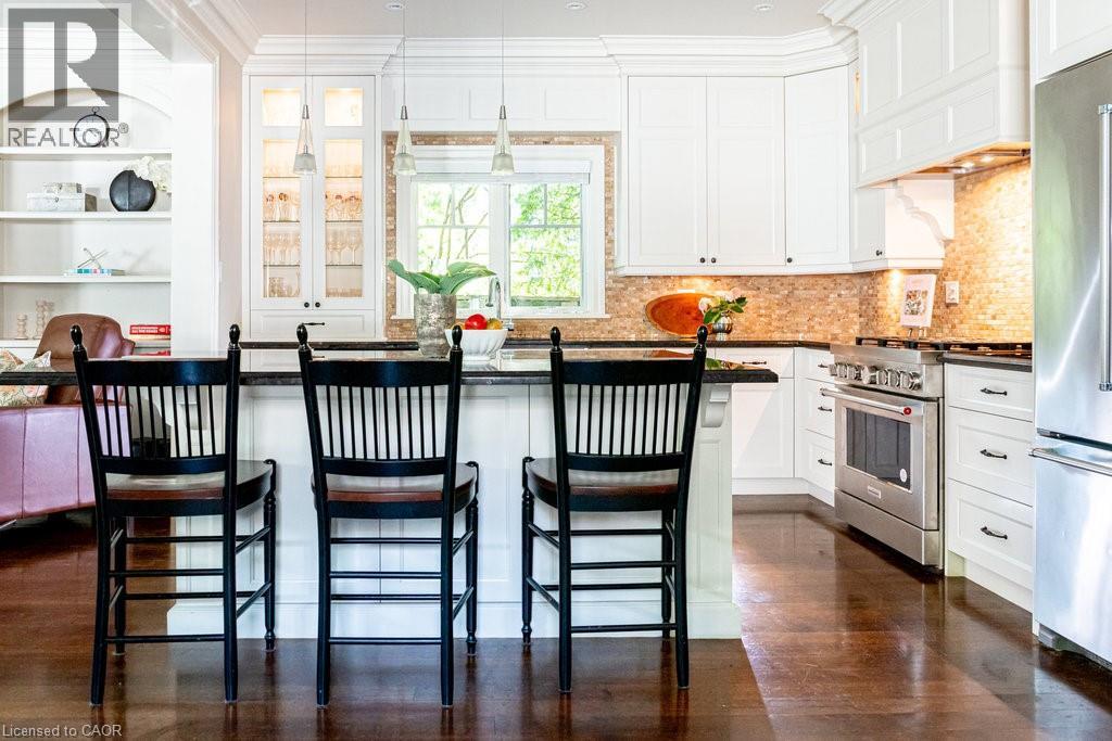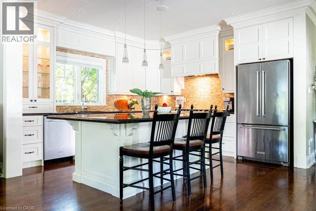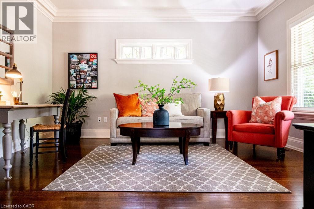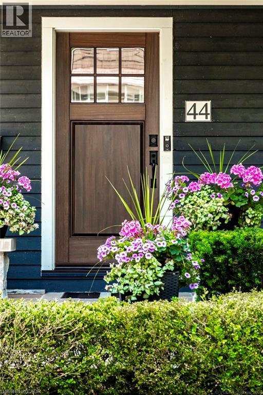 Welcome to 44 Head St—an exceptional residence in the heart of Oakville—just steps to Kerr Village, downtown boutiques, cafés & the lakefront. Here, vibrant walkability meets peaceful, tree-lined charm. Offering nearly 2,200 sq ft above grade + a fully finished 1,015 sq ft lower level, this timeless home blends character with modern comfort. Set behind manicured gardens, dark slate wood siding & crisp white trim frame a welcoming front porch—perfect for morning coffee or evening wine. Inside, 9' ceilings, hardwood floors, crown moulding & high baseboards create an elevated aesthetic. The entertainer’s kitchen features granite countertops, a generous island, professional-grade appliances & abundant storage, flowing seamlessly into bright, open-concept living & dining spaces. A gas fireplace with custom millwork anchors the room, while French doors open to a beautifully landscaped, private rear garden—ideal for relaxing or hosting al fresco. A versatile main-floor room offers flexibility as a home office, den or formal dining room. Upstairs, 3 spacious bedrooms each enjoy their own ensuite with heated floors & walk-in closets—luxury & privacy for all. The lower level with 9' ceilings adds a large family room, 4th bedroom, 3-pc bath & expansive laundry room. Custom built-ins throughout provide exceptional storage. The detached garage includes an EV charger & rare basement storage, while the extra-long driveway accommodates 6 cars. The fully fenced backyard offers a private garden with pretty perennials as well as a stone patio. The unbeatable location places parks, shops, restaurants & the waterfront at your doorstep. Meticulously maintained with thoughtful updates: powder room renovation (2024), driveway resurfaced (2024), exterior freshly stained (2024) & insulation upgraded to R60 (2025). Ideal for empty nesters, downsizers & families alike—this turnkey home is a rare opportunity to experience Oakville’s historic charm at its finest. (70213523)