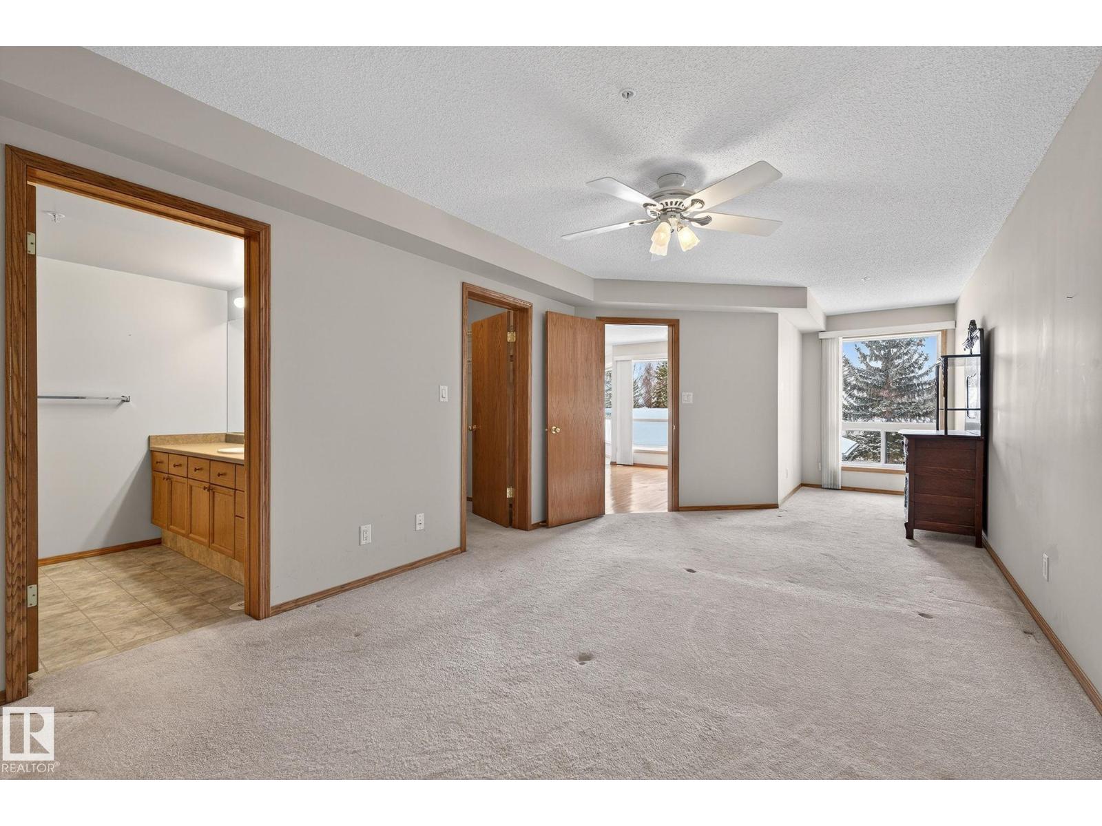 RARE SINGLE LEVEL CONDO WITH HEATED DOUBLE ATTACHED GARAGE (tandem)! Situated in the sought after Riverbend area, this is one of the larger floor plans in the well managed Riverside Estates building. Nearly 1300 sqft with 2 Bedrooms + Den, 2 full bathrooms, large living room with gas fireplace, & bright kitchen with updated appliances. Stay comfortable year round with Central A/C and enjoy the convenience of in-suite laundry & in-suite storage room. One of the main selling points of this condo is the rare heated attached garage with room for 2 vehicles (or 1 vehicle & plenty of extra storage space). Age restricted (18+) building with an exercise room, meeting room, & guest suite. Ideally located in the SW Haddow neighbourhood in Riverbend, this building offers quick access to all amenities & public transportation. Condo fees include heat & water! Come check it out! (33880546)