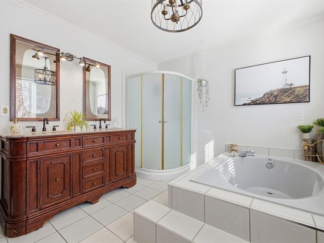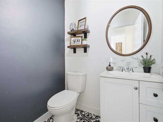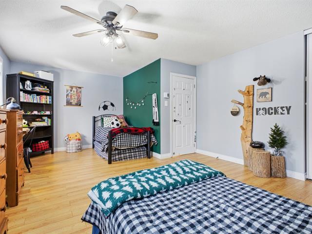 Superb two-story house offering 4 bedrooms (3+1), 2 bathrooms, and a powder room. It features wood and ceramic floors on the ground floor, a wood kitchen, a wood-burning fireplace, and abundant windows. Large bedrooms upstairs and finished basement with bathroom added in 2022. Enjoy a lot with no rear neighbors, featuring an above-ground pool, shed, and garage. Several renovations over the years. Garage and double asphalt driveway. Family-friendly neighborhood close to essential services. (54404963)