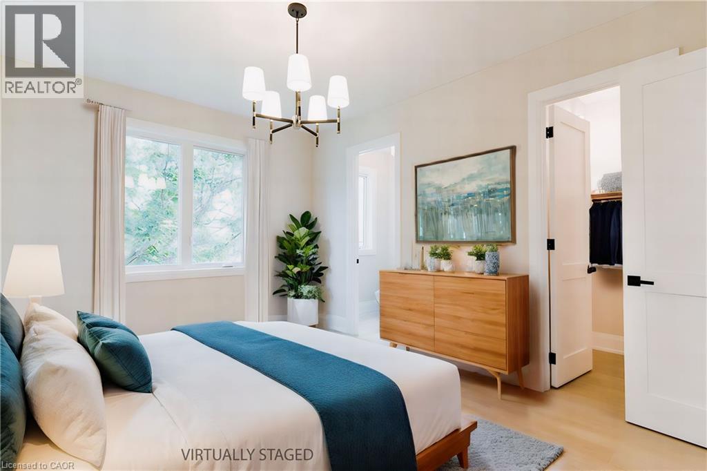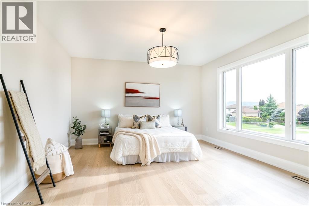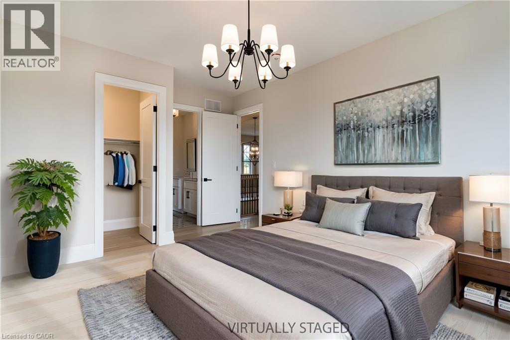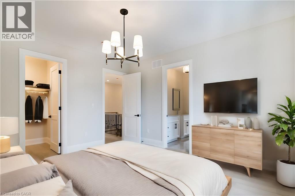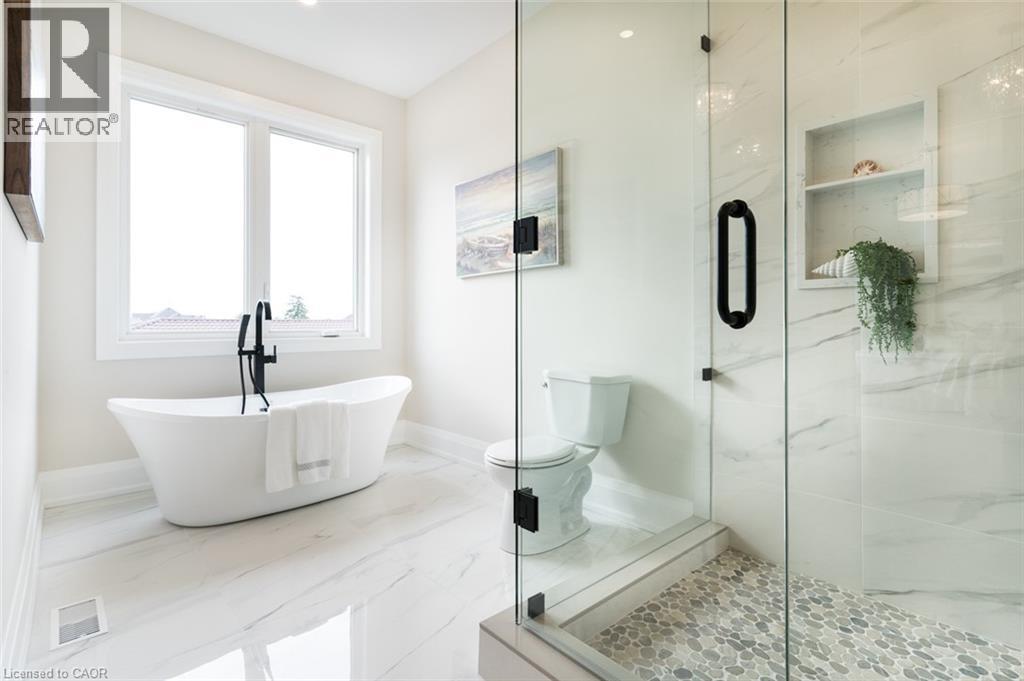 Welcome to a stunning modern 4,500 sq. ft. masterpiece where luxury and craftsmanship unite seamlessly. This custom two-story home epitomizes contemporary sophistication, offering an unparalleled living experience defined by soaring 10-foot ceilings on the main level and 9-foot ceilings upstairs. At the heart of the home is a sleek, designer kitchen featuring custom cabinetry with pull-out drawers, a dedicated servery, and an oversized walk-in pantry—a perfect blank canvas awaiting your personal choice of premium appliances. Adjacent is the expansive, open-concept living area highlighted by a striking coffered ceiling, an elegant electric fireplace, and breathtaking windows that bathe the space in natural light. The main level also features a private office behind grand 8-foot doors, offering a quiet retreat or ideal workspace. The finished basement, complete with a 2-piece bathroom and 9-foot ceilings, adds versatile space for recreation or fitness. Upstairs, the primary suite serves as a serene escape with a spacious walk-in closet and a spa-inspired 5-piece ensuite. A second bedroom features a private 3-piece ensuite, while two additional bedrooms share a well-appointed 5-piece bathroom. Step outside to a private backyard oasis with a covered patio, BBQ gas hookup, and lush landscaping. Additional high-end features include an oak staircase with iron spindles, a hardwired security system, and Wi-Fi access points on each floor. Located in a sought-after neighborhood just minutes from the QEW, a future GO station, and top-rated schools, this exceptional home offers the perfect blend of luxury and location. (70213828)