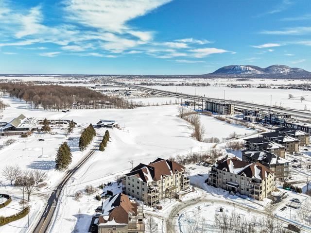 ++RARETÉ, MAGNIFIQUE CONDO 3 CHAMBRES AVEC VUE SUR LE GOLF!++ Cette splendide et lumineuse unité comporte une aire de vie de 1360pi2. Avec une vue panoramique sur le Golf de la Vallée du Richelieu et une fenestration hors normes, le condo 202 sera assurément un coup de coeur pour quiconque viendra le visiter! Matériaux de qualité, vaste cuisine avec grand ilot et comptoir en quartz, plancher en lattes de bois et foyer au gaz naturel au salon! Système de chauffage avec climatisation centrale. Les chambres sont de bonne dimension et la configuration des lieux est optimale. Terrasse avec vue incroyable. 1 stationnement au garage et 1 extérieur! (45447882)
