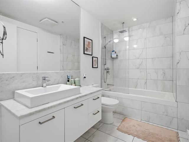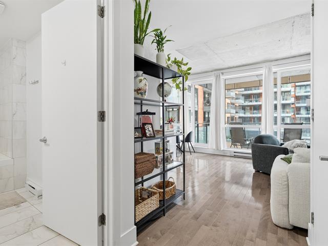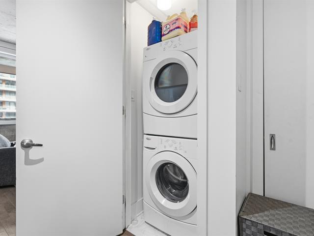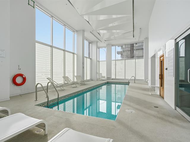 Vieuxport, facing the Aui de l'horloge, this magnificent condo with an indoor garage is rented until June 30, 2027, at $2,210/month--an excellent investment. This apartment is close to downtown, Old Port restaurants, public transportation, CEGEPs, universities, the metro, bike paths, and more. It is bathed in natural light thanks to its large windows and 9-foot ceilings, and features a modern open-concept kitchen, an elegant bathroom, and a private terrace overlooking a charming interior garden. Upscale common areas include an urban chalet, a rooftop terrace and pool, an indoor pool, a sauna, and a gym. (56471079)