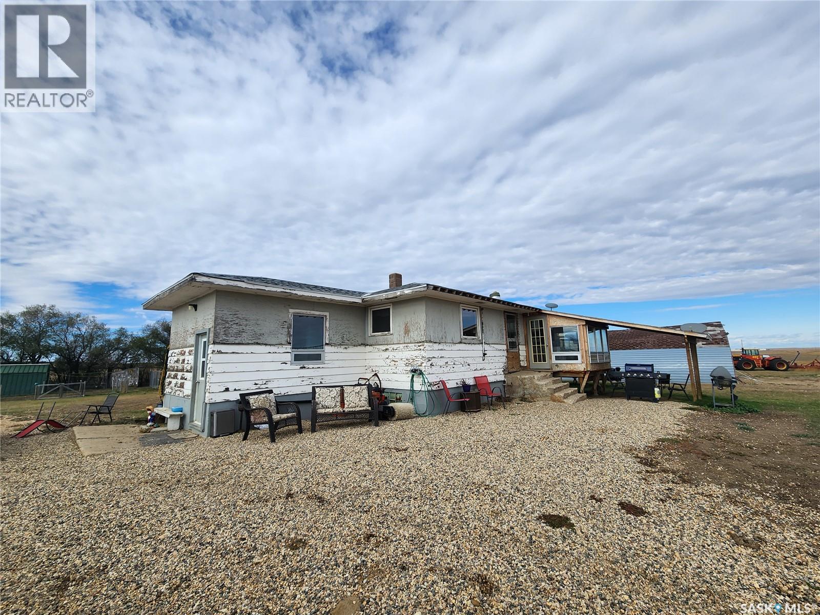 Looking for a reasonably priced acreage setup for horses? Here we have 26.39 acres in the R.M. of Stonehenge. On the yard we have a corral setup for horses/cows, 2 watering bowls, a spring fed dugout, 2 barns, a 50'x100' quonset, pump house and other small out buildings. This property also includes a 1,031 sq. ft. 2 bed / 2 bath house that has had lots of updates inside. Entering this home, you have a large mudroom with a bathroom and laundry room right off of it giving easy access. On the main floor we have a large open concept kitchen/living room with an attached sunroom. Down the hall we have 2 good sized bedrooms and an oversized beautifully renovated bathroom with a soaker tub. Downstairs we have a family room and 2 dens which could easily be converted into bedrooms by adding windows, as well as lots of extra storage space. This home has been partially renovated; if you replace the siding on the outside this would be a beautiful family home. Located about 23 km SW of Assiniboia. Call today to book a showing! (29435818)