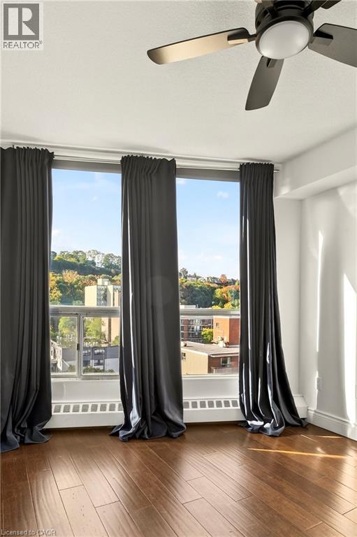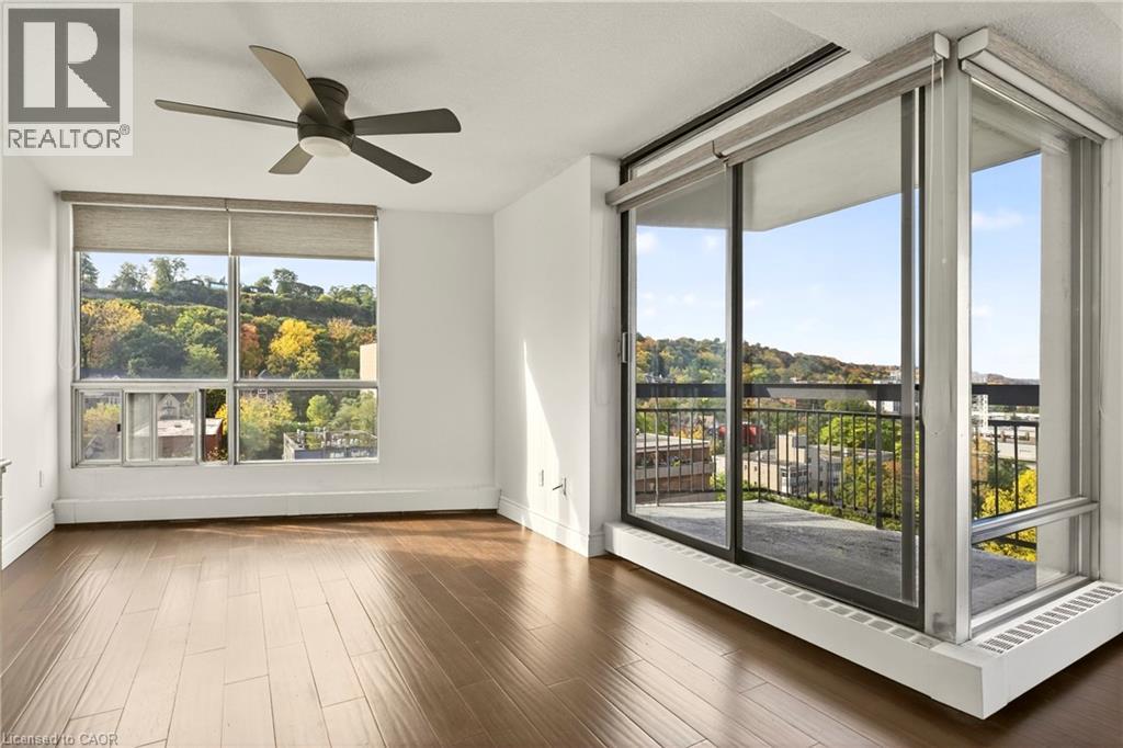 Exceptional views from every window! Discover this stunning 2-bedroom, 1.5-bath, 18th floor condominium apartment with balcony, offering spectacular southwest views overlooking the escarpment and city skyline — a true million-dollar vista. The over 1100 square feet of living space includes an updated kitchen featuring granite countertops, stainless-steel appliances, and a breakfast bar, perfect for casual meals at home. Bamboo flooring throughout adds warmth and style to the spacious interior. Conveniently located within walking distance to St. Joseph's Hospital and close to public transit, mountain access roads and the Hunter Street GO Centre, this well-maintained building offers both comfort and practicality. The building boasts numerous remarkable amenities including a gym, swimming pool, squash court, games room, and party room. Recent renovations have transformed the common areas with a new lobby, refreshed hallways, and modernized unit doors, giving the property a contemporary look that feels like a brand-new building. Underground parking is available for an additional fee. Don't miss this exceptional opportunity to own a move-in-ready unit with breathtaking views and premium amenities. Schedule your showing today! (70214953)