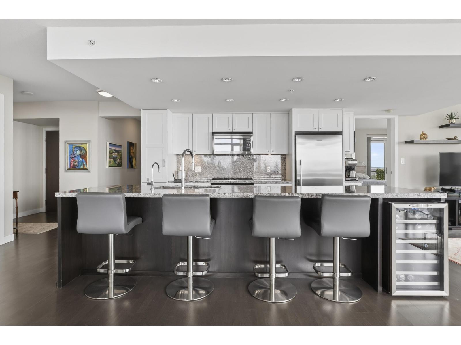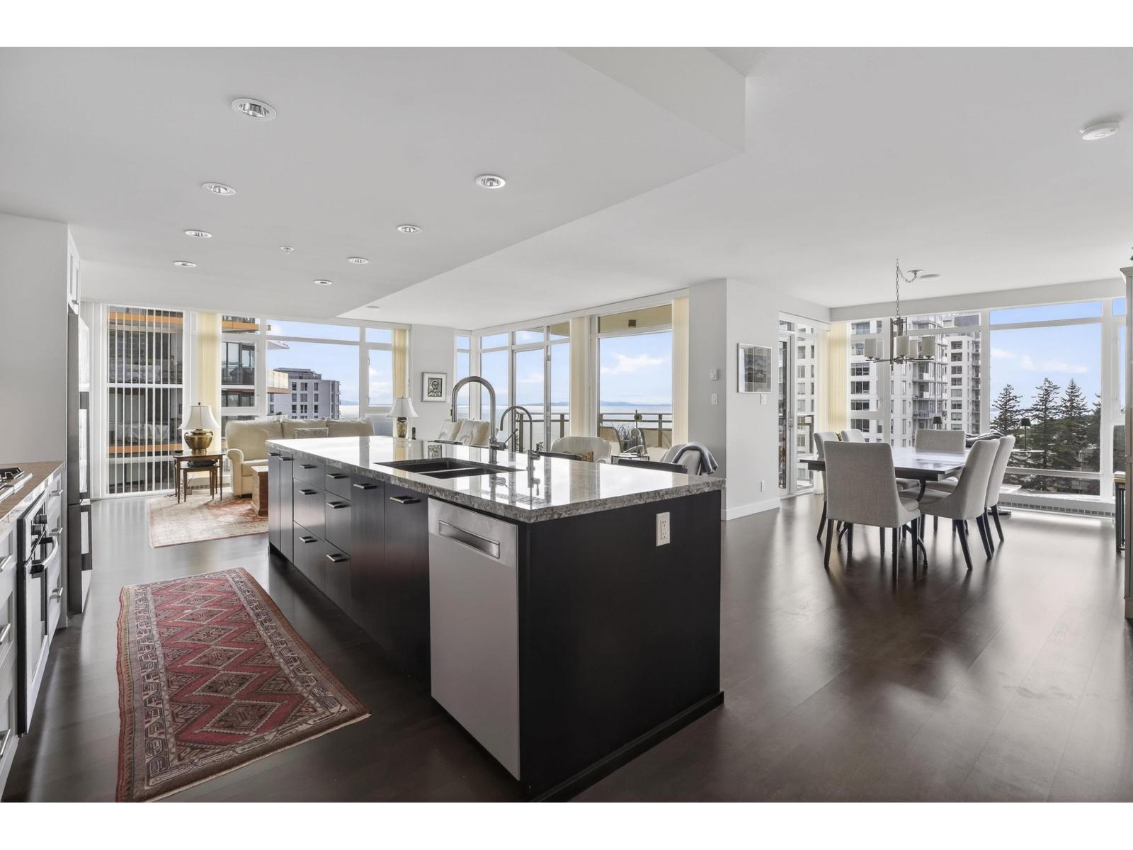 Opportunity knocks at AVRA! This spacious 1,600+ sq. ft. condo in the Georgie award-winning building offers luxury living in the heart of White Rock. Featuring 3 bedrooms, 3 parking stalls, 3 private balconies, and 2 storage lockers, this home makes downsizing effortless without sacrificing space or comfort. Enjoy stunning ocean views throughout, along with a breathtaking view of Mount Baker. Beautifully maintained and thoughtfully appointed, this residence showcases true pride of ownership from the original owners since 2014. The 3 parking stalls are all located on the main level, and 2 are side-by-side with an EV charger. A short walk to Thrifty Foods, Semiahmoo Mall, drug store, coffee shops, and restaurants. A rare opportunity to own an exceptional home in a premier location. (32499637)