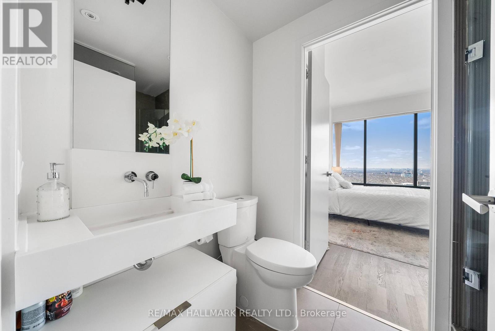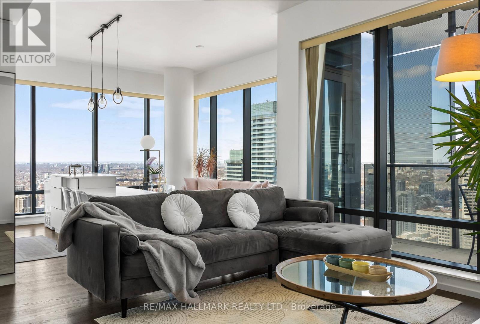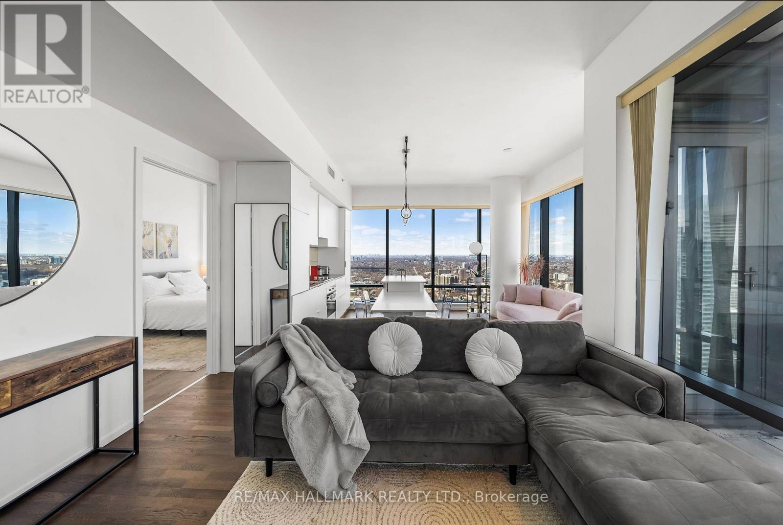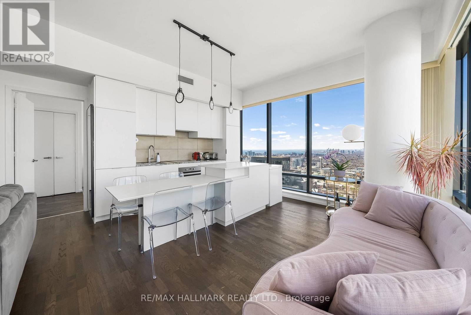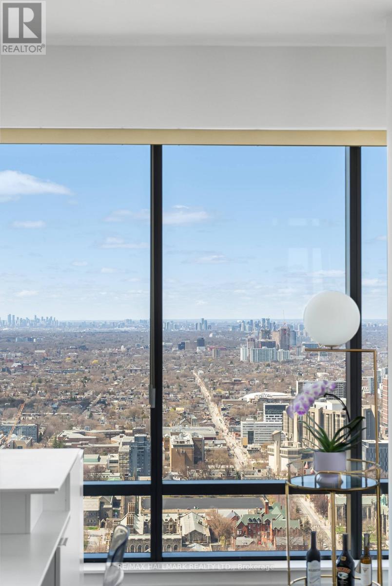 A rare opportunity to reside above the city in this impeccably furnished executive corner suite at Five Condos. Located on the 47th floor, this stunning residence offers an expansive layout with dramatic 10-foot ceilings and floor-to-ceiling glass framing sweeping northwest skyline views stretching to the CN Tower and Lake Ontario.Designed for both comfort and sophistication, the open-concept living and dining space flows seamlessly into a sleek European-style kitchen outfitted with premium integrated appliances and contemporary finishes. Every piece of furniture has been carefully curated to complement the architecture - delivering a refined, turnkey living experience. Includes parking and locker. Situated in the heart of downtown just steps to Yorkville, U of T, transit, fine dining, and luxury shopping. World-class building amenities and concierge complete this elevated lifestyle offering. (42233906)