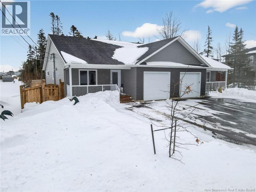 BUILT IN 2023 // VERY WELL MAINTAINED // FULLY FINISHED BASEMENT // PRIVATE FENCED BACKYARD WITH HOT TUB // CLOSE TO POPULAR SCHOOLS - HIGHWAY ACCESS- SHOPPING CENTRES and MORE !! Welcome to 315 Teaberry Ave. This stunning bungalow-style semi-detached home is located in one of Moncton Norths most sought-after neighbourhoods in Moncton. This property offers the ideal blend of comfort, convenience, and modern living. Step inside to a beautifully designed open-concept main floor featuring a bright and inviting living space, highlighted by a gorgeous kitchen with quality finishes and a functional layout perfect for entertaining. The main level offers two bedrooms, including a spacious primary suite complete with a walk-in closet and a private 4-piece ensuite. A convenient half bath with main-floor laundry adds to the homes practical appeal. The fully finished basement expands your living space with two additional bedrooms, a full bathroom, and plenty of room for guests, family, or a home office setup. Outside, enjoy your fully landscaped property featuring a double paved driveway and attached single garage. The backyard is a true highlight fully fenced with a wooden privacy fence, creating a peaceful and private retreat. Relax year-round in the hot tub or unwind on the covered patio with an overhang ceiling, offering protection from sun and rain. This nearly new home offers modern style, thoughtful design in a prime location. CALL TODAY FOR MORE INFORMATION !! (29541287)