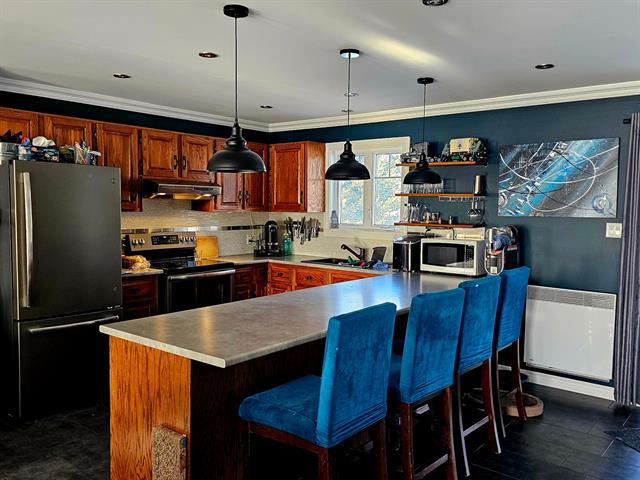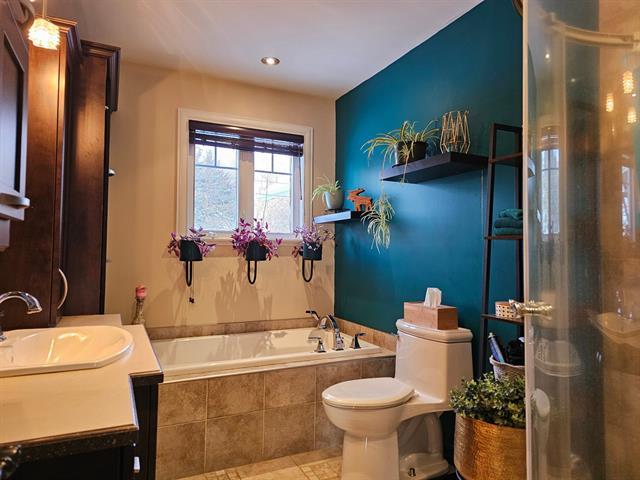 Située sur un terrain de 27079 pieds carrés, cette propriété rénovée avec goût vous offre 3 chambres à coucher, une salle de bain et une salle d'eau, des aires ouvertes au rez-de-chaussée et au sous-sol (fini en majeure partie), une salle familiale, un bureau, un immense stationnement, un garage double, une cour clôturée et aménagée avec toit cathédrale, spa et cabanon. La fenestration y est abondante afin que vous puissiez profiter du panorama et des couchers de soleil. Presque clé en main, c'est une ocasion dans le secteur! (45107463)
