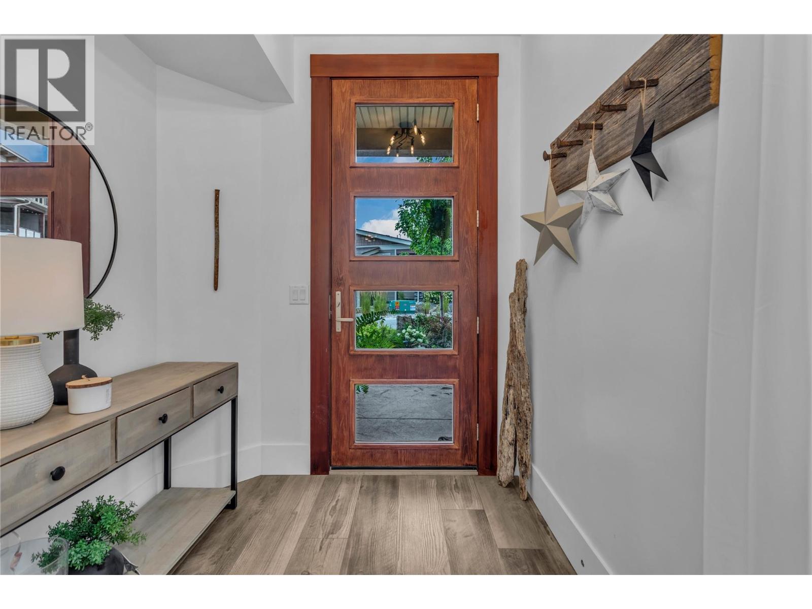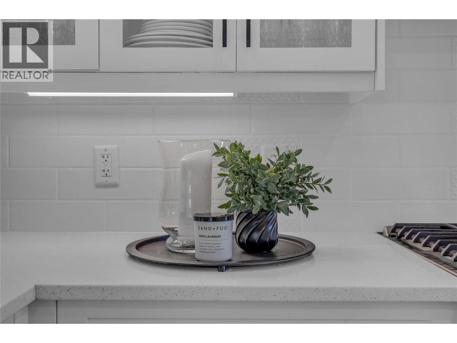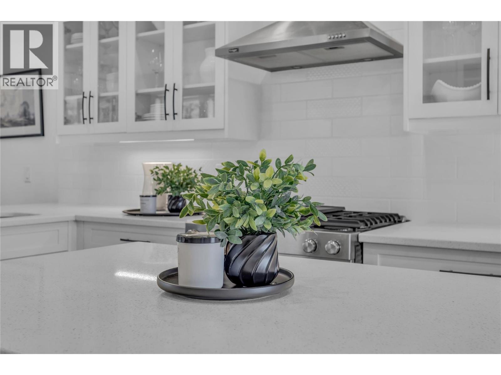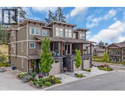 Welcome to The Trails! Backing onto Pincushion Mountain and steps from Hardy Falls and endless scenic trails, this location couples nature with convenience. An executive 9-hole golf course is approved next door, while Beach Avenue’s shops, restaurants, parks, marinas, wineries, and microbreweries are just minutes down the hill. This exceptional end unit presents like a show home. The craftsman exterior with Hardie board siding, rich wood and slate accents, and a stamped concrete entry sets the tone for the quality throughout. Inside, soaring ceilings and expansive windows flood the home with natural light, creating an open, airy atmosphere. The main living level is designed for entertaining, featuring a stunning white kitchen with upgraded cabinetry, quartz countertops, custom backsplash, premium appliances, and refined hardware. The living room is anchored by a cozy natural gas fireplace with a solid wood mantle and elegant shiplap detail. Two inviting covered decks on this level offer private views from both sides of the home. Upstairs offers 3 generous bedrooms and 2 full bathrooms, including a serene primary retreat with vaulted ceilings and transom windows. On the entry level, a large rec room with a 2nd fireplace opens directly to the patio — ideal for guests or seamless indoor-outdoor living. Phantom screens throughout, an oversized tandem garage with abundant storage for all your lifestyle gear, and the peace of mind of a FireSmart community. (39784547)