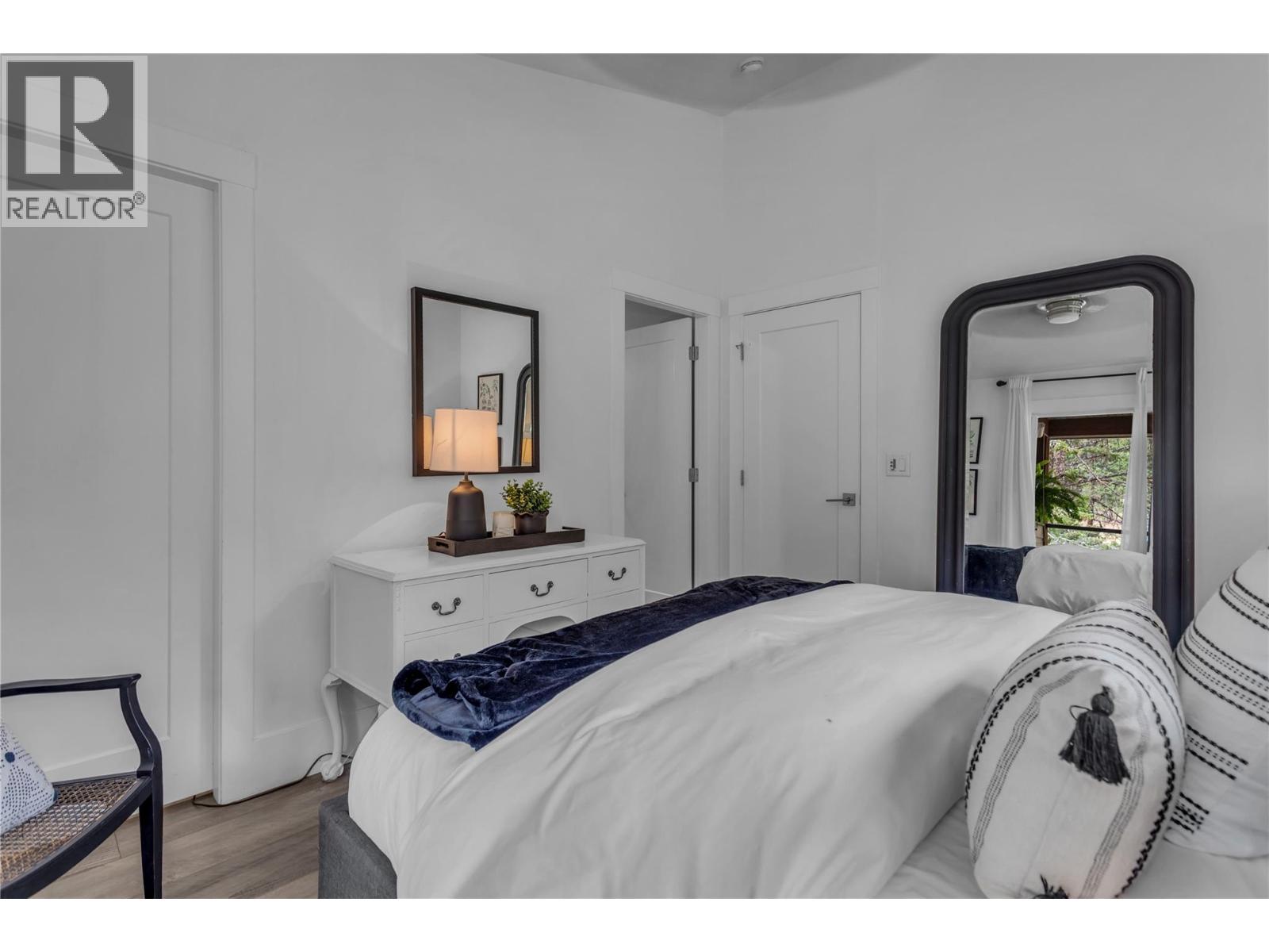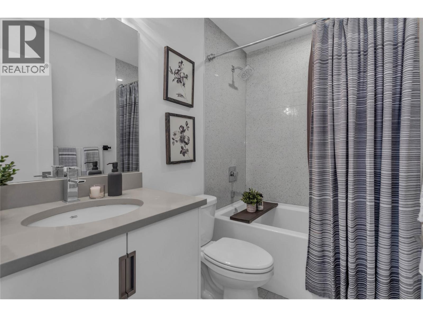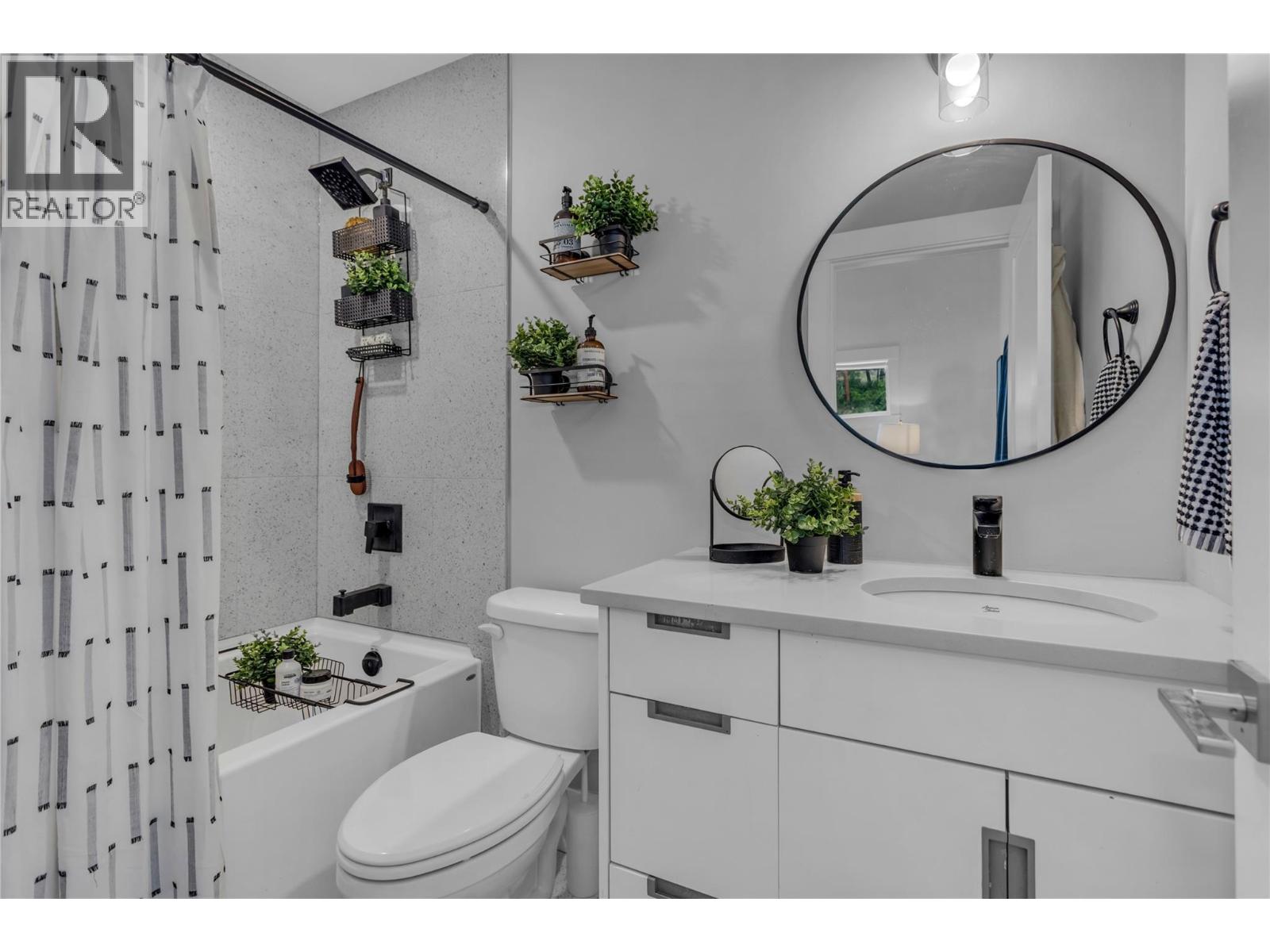 Welcome to The Trails! Backing onto Pincushion Mountain and steps from Hardy Falls and endless scenic trails, this location couples nature with convenience. An executive 9-hole golf course is approved next door, while Beach Avenue’s shops, restaurants, parks, marinas, wineries, and microbreweries are just minutes down the hill. This exceptional end unit presents like a show home. The craftsman exterior with Hardie board siding, rich wood and slate accents, and a stamped concrete entry sets the tone for the quality throughout. Inside, soaring ceilings and expansive windows flood the home with natural light, creating an open, airy atmosphere. The main living level is designed for entertaining, featuring a stunning white kitchen with upgraded cabinetry, quartz countertops, custom backsplash, premium appliances, and refined hardware. The living room is anchored by a cozy natural gas fireplace with a solid wood mantle and elegant shiplap detail. Two inviting covered decks on this level offer private views from both sides of the home. Upstairs offers 3 generous bedrooms and 2 full bathrooms, including a serene primary retreat with vaulted ceilings and transom windows. On the entry level, a large rec room with a 2nd fireplace opens directly to the patio — ideal for guests or seamless indoor-outdoor living. Phantom screens throughout, an oversized tandem garage with abundant storage for all your lifestyle gear, and the peace of mind of a FireSmart community. (39784547)