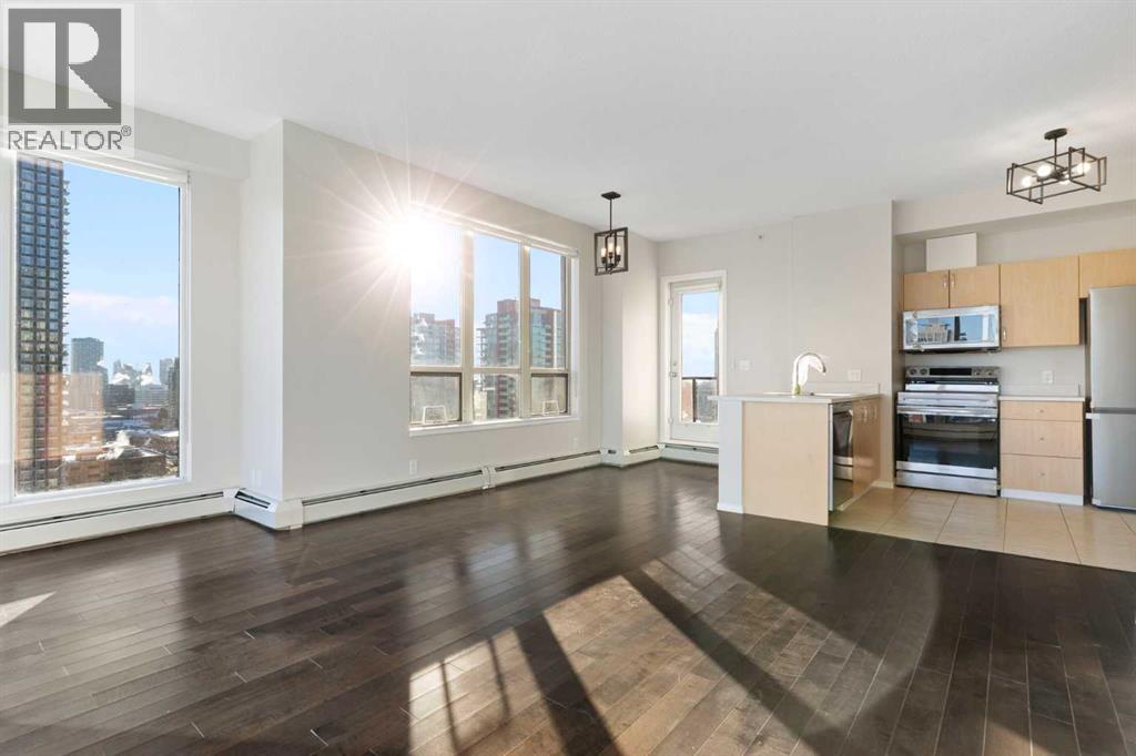 This exceptional end unit on the north side of Vantage Pointe offers truly breathtaking panoramic views of the Downtown Core and the Rocky Mountains, plus stunning east-facing city views you’ll never get tired of. Perched on the 15th floor, this bright and beautifully updated 2-bedroom, 2-bathroom home delivers both comfort and convenience in the heart of the city.Recently refreshed, the unit was painted and the kitchen has been fully upgraded with brand new smart appliances, a new countertop, a modern sink and faucet and new light fixtures - blending style with everyday functionality. Floor-to-ceiling windows flood the space with natural light and frame those spectacular views from nearly every angle.Step outside onto your spacious east-facing balcony, complete with a gas outlet, perfect for summer BBQs or simply enjoying the sunrise with your morning coffee. Inside, you’ll also appreciate the convenience of in-suite laundry and a smart, functional layout that maximizes space and privacy.Residents of Vantage Pointe enjoy a well-equipped fitness facility with steam room, an Owners’ Lounge, bike storage, underground titled parking, and ample heated visitor parking. Condo fees include heat, water, electricity, and your parking stall - simplifying your monthly budgeting.With Co-op grocery and a liquor store conveniently located right downstairs, daily errands couldn’t be easier. Four high-speed elevators ensure seamless access, making this building both efficient and comfortable to live in.Vantage Pointe offers central, convenient urban living at an accessible price point - and opportunities like this rarely come up. Book your private viewing today - and come see how easy it is to truly love where you live. (31695593)