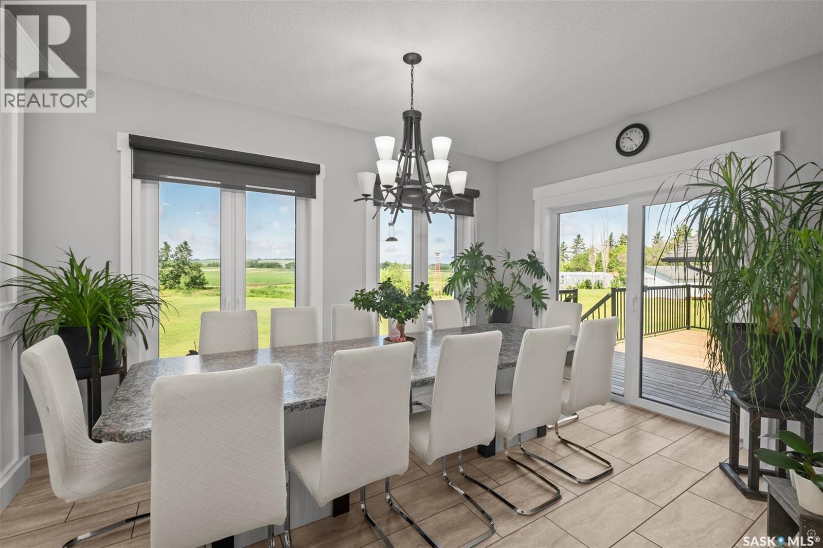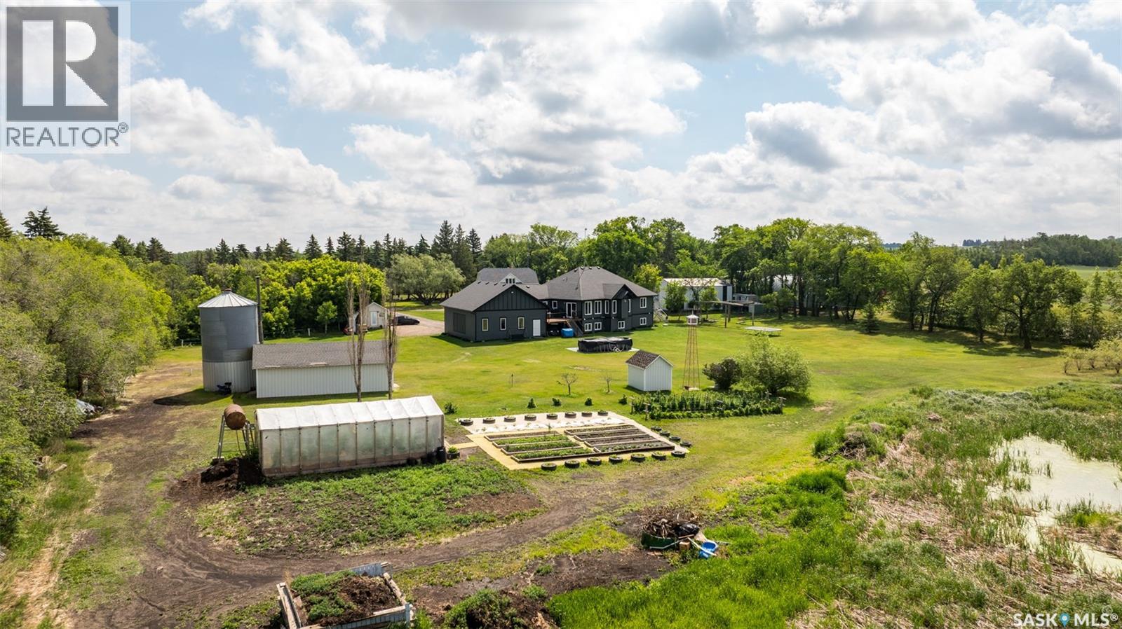 Discover your own piece of paradise! Situated a few minutes south of Prince Albert, this 149 acre property provides pristine views of gently rolling hills and a complete lifestyle change. The primary residence is a gorgeous custom built 2,090 square foot fully developed raised bungalow that includes incredible finishes throughout, butler pantry, massive formal dining room, 6 bedrooms, 4 bathrooms and a huge 32 x 40 heated attached garage. The guest house supplies an additional 6 bedrooms, carport, enclosed 3 seasons sunroom and would be great for revenue or extra space for the family. Throughout the balance of the property you will find another 32 x 40 heated detached shop that has a 2nd floor mezzanine, a steel quonset with electricity, climate controlled green house, sauna w/ cold plunge, small barn with a pen/chicken coop plus a beautiful park like yard. Additionally, both homes are equipped with natural gas, city water, well water for irrigation and alternative heat. This truly is a once in a lifetime opportunity. (29437006)