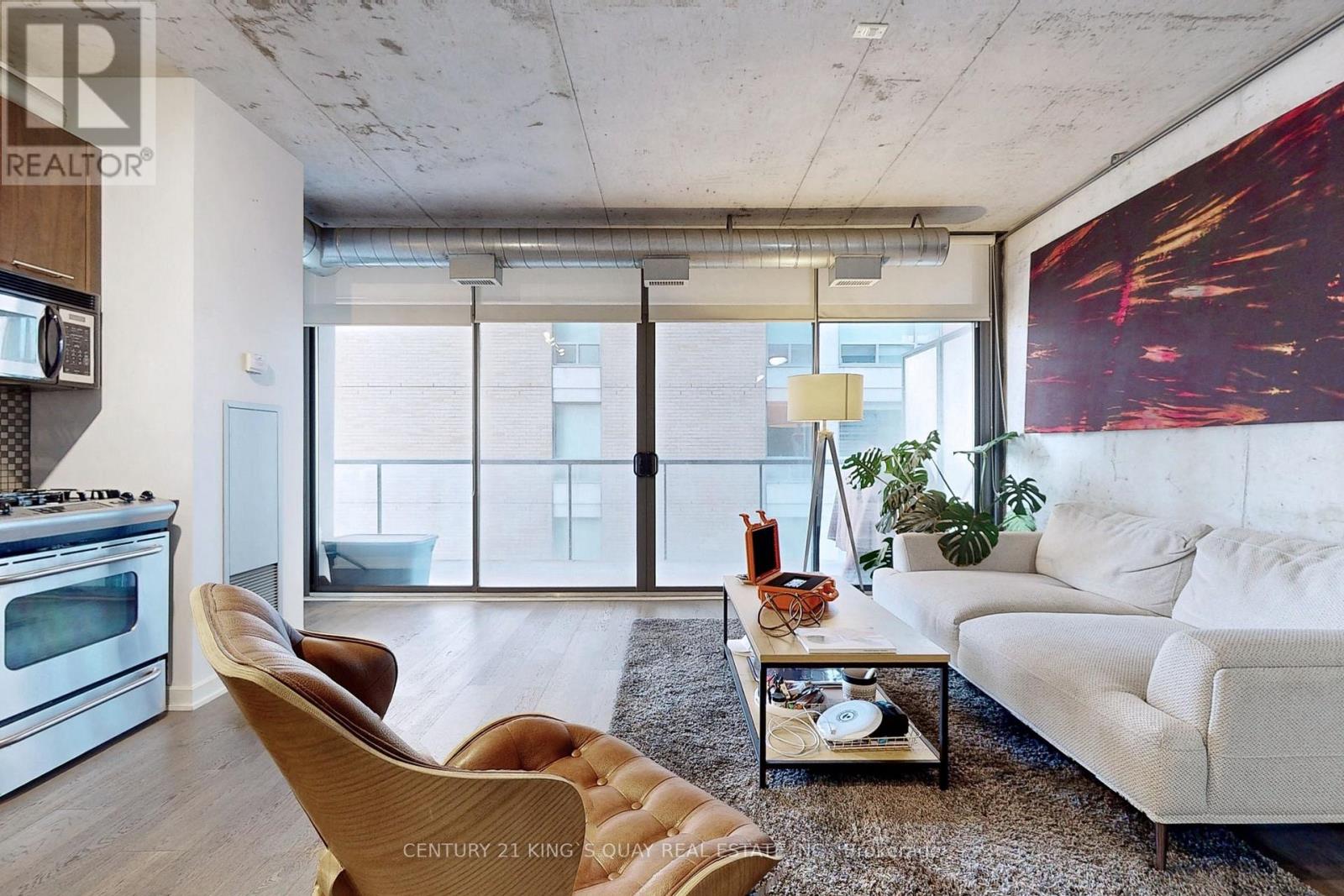 Welcome to 533 Richmond, one of the most sought-after boutique residences in downtown Toronto's vibrant Fashion District. This rare 777 sq. ft. corner one-bedroom plus den suite is filled with natural light, thanks to expansive windows and a thoughtfully designed layout. The spacious open-concept living and dining area is perfect for both relaxing and entertaining. Upgraded flooring (2024), soaring 9-ft ceilings, and loft-style concrete ceilings create a modern, urban aesthetic, while floor-to-ceiling windows lead to a generous 145 sq. ft. balcony complete with a gas connection for BBQs. The versatile den features its own walk-out and an incredible wraparound window setting ideal for a home office, creative studio, or guest space. The spacious primary bedroom includes a large closet with a built-in organizer for optimal storage. Unbeatable location just steps to the Queen Street West streetcar, GoodLife Fitness, Loblaws, the iconic Graffiti Alley, and some of the best restaurants and cafés in the city. Experience stylish boutique living in the heart of downtown Toronto. (42235754)