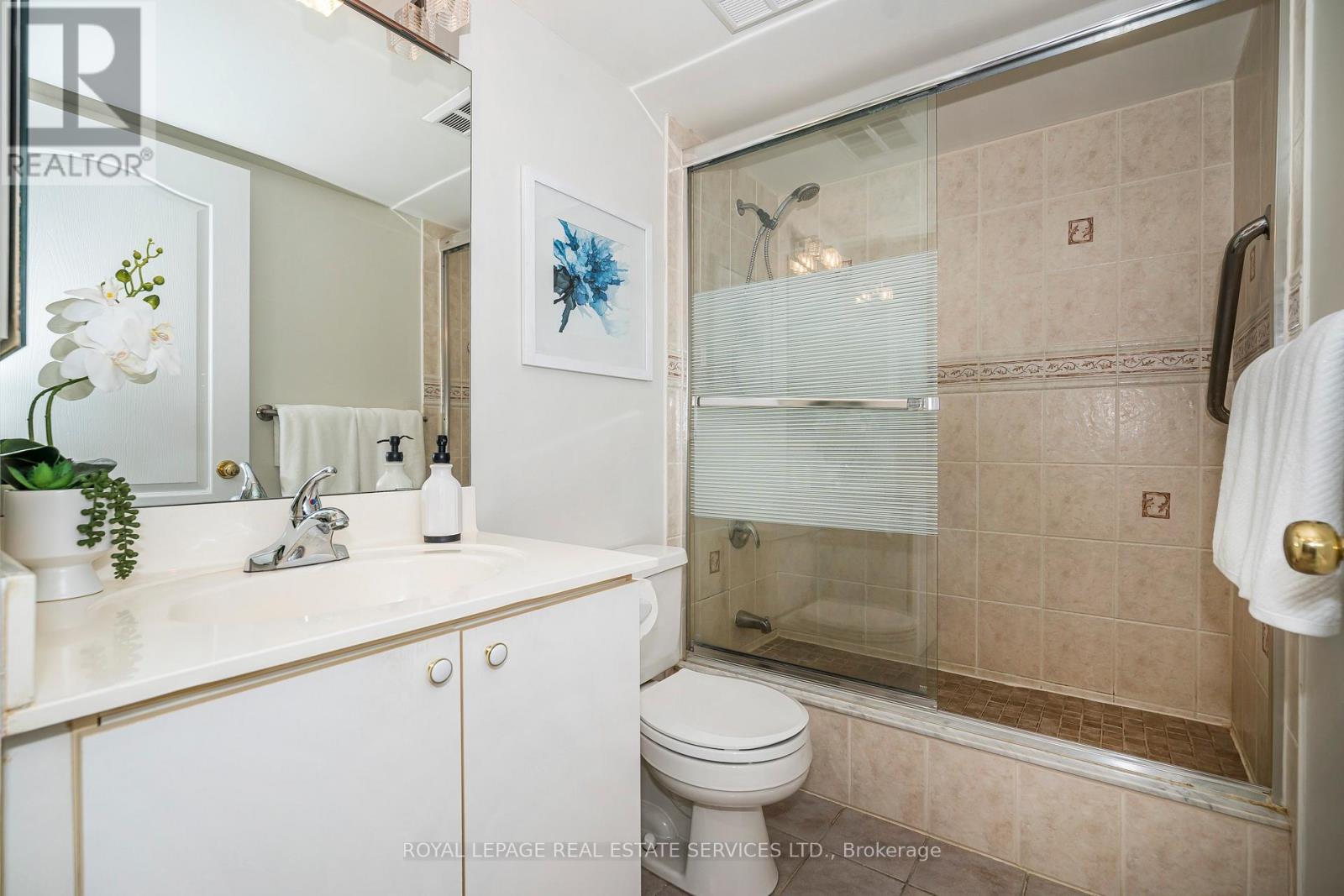 Welcome to refined condo living in the heart of Pickering. This spacious, south-facing 2-bed, 2-bath suite is filled with natural light and offers an ideal opportunity for downsizers first-time buyers, or anyone seeking comfort and convenience in a prime location. Designed with both function and flow in mind, the kitchen features a bright breakfast area and a convenient pass-through to the dining room-perfect for everyday living and effortless entertaining. The open-concept living and dining area creates a welcoming space for hosting family and friends, or just a relaxing evening at home. Step out onto the generous south-facing balcony-ideal for summer entertaining, a meal with 4 people, or enjoying your morning coffee with a view. The spacious primary retreat offers a large sun-filled window, two double closets, and a private 4-piece ensuite. The second bedroom is equally versatile, featuring a double closet and bright southern exposure-perfect as a guest room, home office, or additional family space. With excellent bones and a smart layout, this home also presents a fantastic opportunity to add your own modern cosmetic touches. Just steps to Pickering Town Centre, plus an array of restaurants, grocery stores, and everyday essentials. Enjoy nearby parks, library services, recreation centres, and easy commutes with the Pickering GO Station only moments away. This gated community offers exceptional amenities, including 24-hour gatehouse security, a spectacular outdoor pool, fitness centre, BBQ area billiards room, social lounges, and a resident car wash in the underground garage, close to your owned parking space and extra storage locker. Even better-maintenance fees include heat, hydro, water, internet, cable, and phone for true all-inclusive living. Don't miss this opportunity to enjoy comfort, convenience, and carefree living in one of Pickering's most sought-after communities. (42235695)