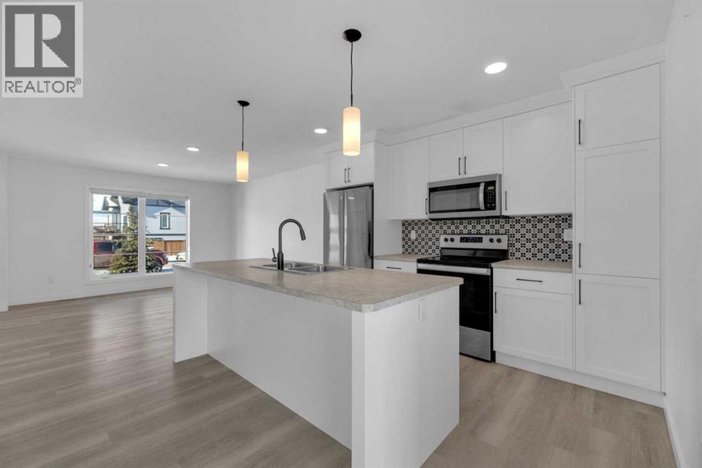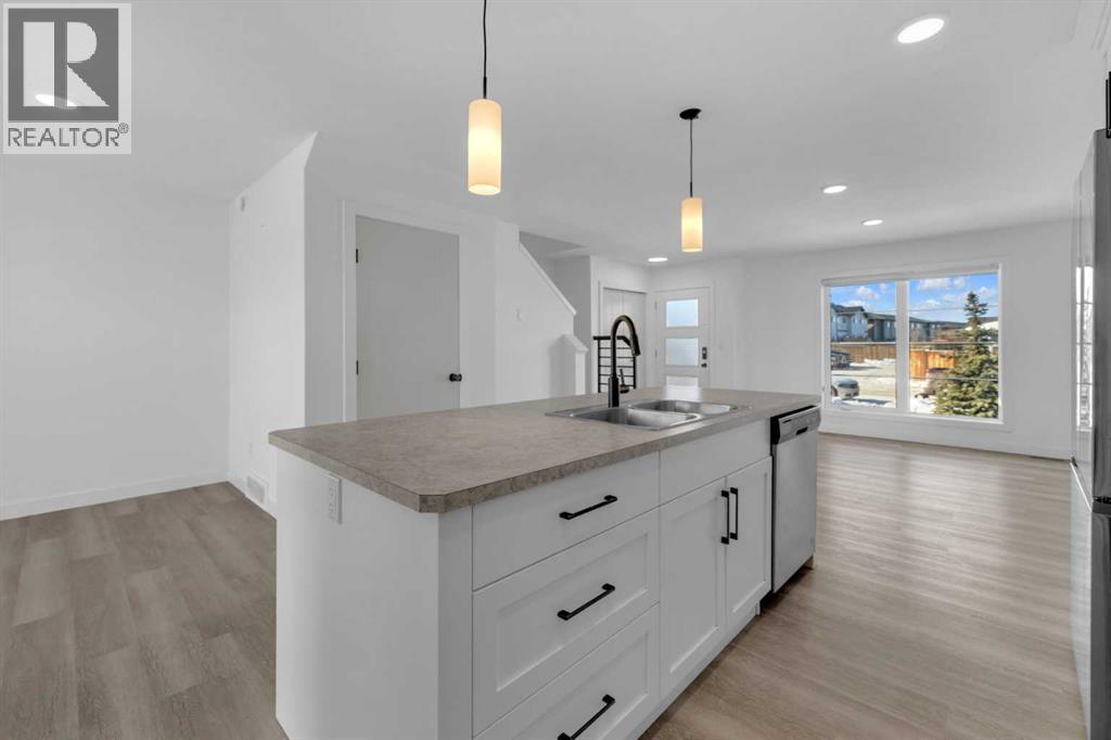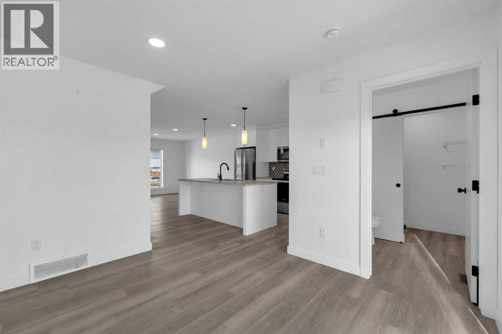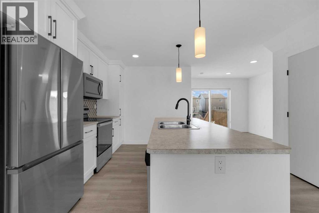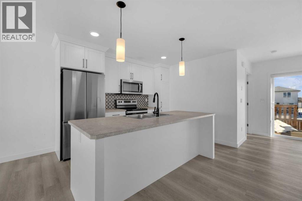 Welcome to this well-appointed two-storey townhome in the desirable community of Aspen Lakes West in Blackfalds. Offering an open and functional layout, this home is designed for comfortable everyday living and easy entertaining. The main floor features a spacious kitchen with a large central island, flowing seamlessly into the dining and living areas. Garden doors off the dining space lead to the deck, creating the perfect setup for summer BBQs and indoor-outdoor gatherings. A convenient 2-piece bathroom with laundry completes the main level. Upstairs, the primary bedroom includes a private 3-piece ensuite, while two additional bedrooms and a full 4-piece bathroom provide excellent space for family, guests, or a home office. The undeveloped basement is ready for your imagination with a possibility of another bedroom or bathroom. Step outside to the landscaped and fenced backyard, offering added privacy and extra room to relax or entertain. Located directly next to the Trans Canada walking trail system connecting Red Deer, Blackfalds, and Lacombe, this property is ideal for those who enjoy an active lifestyle. You are also within walking distance to the Abbey Centre and close to parks, schools, and amenities. Blackfalds is well known for its strong sense of community and family-oriented living, making this an excellent place to call home. A fantastic opportunity for first-time buyers, young families, or investors seeking value in a growing community. (31696946)