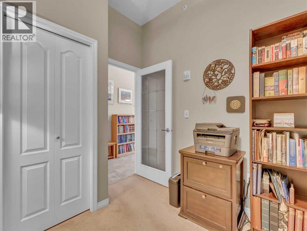 Meticulously maintained and gently lived in, this top-floor 1 bedroom + den suite in Norwood Grande offers comfort, convenience, and exceptional value. With 756 square feet of living space, you’re welcomed by a spacious entryway with a coat closet and an adjacent laundry room featuring extensive built-in storage. Just off the entry, the versatile den includes a closet and a stylish French door—perfect for a home office or guest space.The open-concept kitchen, living, and dining area is warm and inviting. The kitchen showcases beautiful cabinetry, granite countertops, ample counter space, and a full appliance package. The living room is highlighted by a cozy corner fireplace and provides access to the east-facing deck—complete with a storage room and utility space for added convenience.Back inside, the spacious primary bedroom features a walk-in closet with impressive built-in shelving. A large linen closet and a well-appointed 4-piece bathroom complete the interior.This unit also includes underground titled parking conveniently located near the elevator, along with an additional underground storage unit. Condo fees of $445.73/month cover all utilities and provide access to excellent building amenities, including a recreation room, fitness equipment, games area, and guest suites. A fantastic opportunity for low-maintenance living in a well-managed building! (31697574)