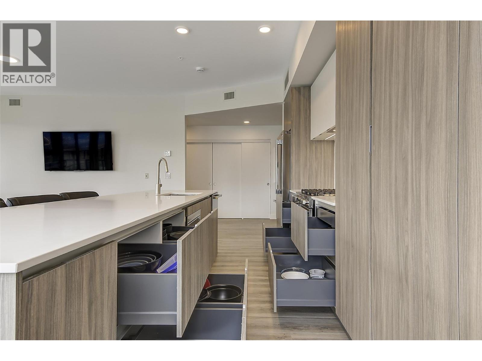 Welcome to this stunning new 3-bedroom, 2-bathroom corner-unit condo in the highly sought-after Residences at Lakeview Village. Located on the main floor, this spacious, open-concept home is filled with natural light from expansive windows, offers pool views, and features durable vinyl-plank flooring throughout. Power blinds have been ordered for the patio doors, along with gravity blinds for the living room and kitchen windows, adding both style and convenience. The beautifully designed kitchen showcases quartz countertops, abundant cabinetry, a 5-burner gas stove, and a massive island perfect for entertaining. The generous primary suite includes a walk-in closet and a spa-inspired ensuite complete with dual vanities, quartz counters, and a tiled shower. Step outside to your spacious covered deck with direct access to green space and walking paths — the perfect place to relax and enjoy warm Okanagan days and evenings. Located just steps from the fitness centre, this home also includes THREE PARKING STALLS and TWO STORAGE UNITS for exceptional functionality. Residents enjoy resort-style amenities including an onsite greenhouse complete with hydroponics and irrigation for year-round growing, a resort-inspired outdoor pool and hot tub, fitness centre, dog wash station, community gardens, secure parcel delivery, and a cutting-edge Butterfly entry system. Just steps to Nester’s Market, Lakesider Brewing Co., a dental office, school, transit, and sports courts — with even more everyday conveniences and services close at hand — and only minutes to beaches, boat launches, and renowned wineries, this home offers an exceptional lifestyle in one of the Okanagan’s most exciting and evolving neighbourhoods. (39785543)