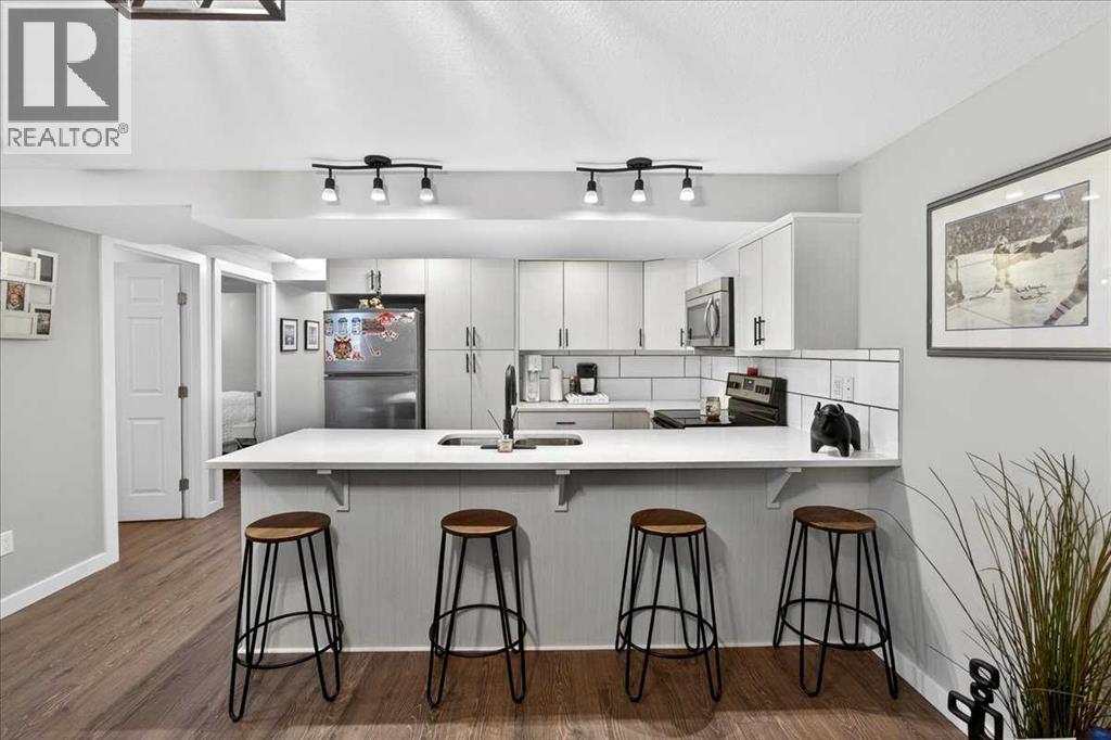 You’ll love the unbeatable convenience of this location paired with the comfort of this thoughtfully designed condo!This charming 2 Bedroom | 1 Full Bath | 711.05 sq ft unit offers a practical and inviting layout perfect for a first-time buyer, investor, or anyone seeking low-maintenance living. As a fully below-grade home, the space is surprisingly open and bright, featuring large south-facing egress windows that welcome in natural light throughout the day. Full disclosure the bedrooms are being indicated as being on the main floor in this listing, but unit is completely below-grade. The kitchen showcases crisp white cabinetry, a functional breakfast bar, and seamless flow into the cozy living area — ideal for relaxing evenings or casual entertaining.One of the standout features is the enclosed, secured patio with private gate access. This versatile space offers room to unwind outdoors while also providing convenient storage options — the best of both worlds.Both bedrooms are generously sized, including one with a walk-in closet and enough additional space for a desk or vanity setup. The full bathroom features a tub/shower combination and in-unit laundry for everyday convenience.Designed with comfort and efficiency in mind, this layout maximizes every square foot — no wasted space.Whether you are looking to step into homeownership or expand your investment portfolio, this is an opportunity you don’t want to miss.Book your showing today! (31695882)