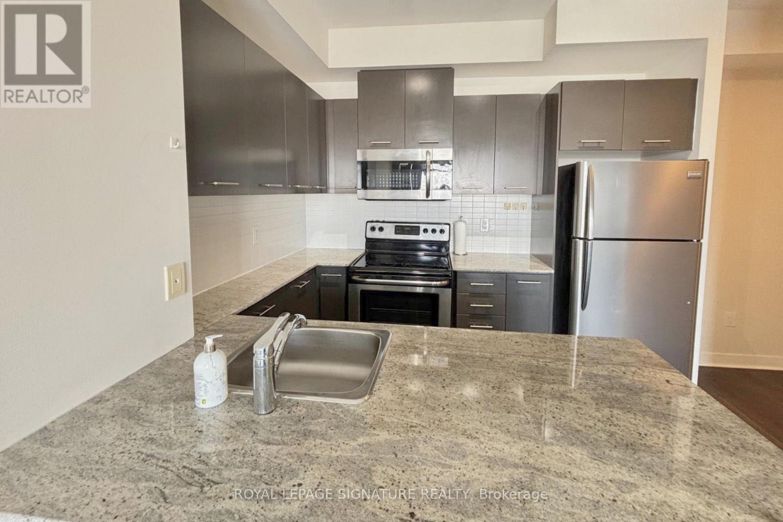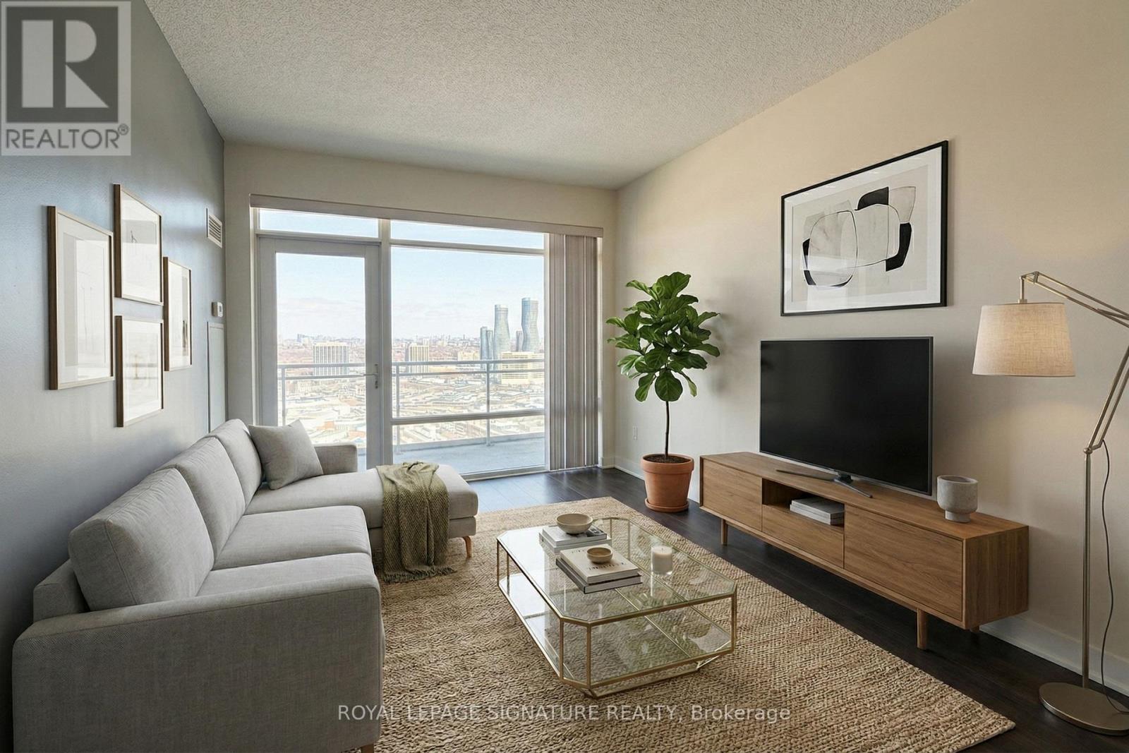 Experience stylish urban living in this stunning 1 bedroom, 1 bathroom condo featuring soaring9 foot ceilings and a bright, modern layout. The kitchen is finished with rich dark espresso cabinetry, sleek granite countertops, a matching backsplash, and stainless steel appliances,all flowing seamlessly into a contemporary living space with elegant bamboo flooring throughout. Just off the kitchen, a convenient built in desk nook provides the perfect work from home setup, while the entryway features an extra large coat closet offering exceptional storage rarely found in one bedroom layouts. Step out onto the large private balcony overlooking Mississauga and on a clear day, views of the Toronto skyline including the CNTower. The updated bathroom showcases clean, modern finishes, creating a comfortable and refined retreat. One parking space is included for added convenience. Residents enjoy access to exceptional resort style amenities including a rooftop BBQ terrace, basketball court, minigolf, theatre room, fully equipped gym, and meeting and party spaces. Ideally located just steps to Square One Shopping Centre, Sheridan College, the bus terminal, Living Arts Centre,and Celebration Square, this condo offers the perfect blend of comfort, convenience, andvibrant city living in the heart of Mississauga. Professionally Managed By Condo1 Property Management. (42236293)