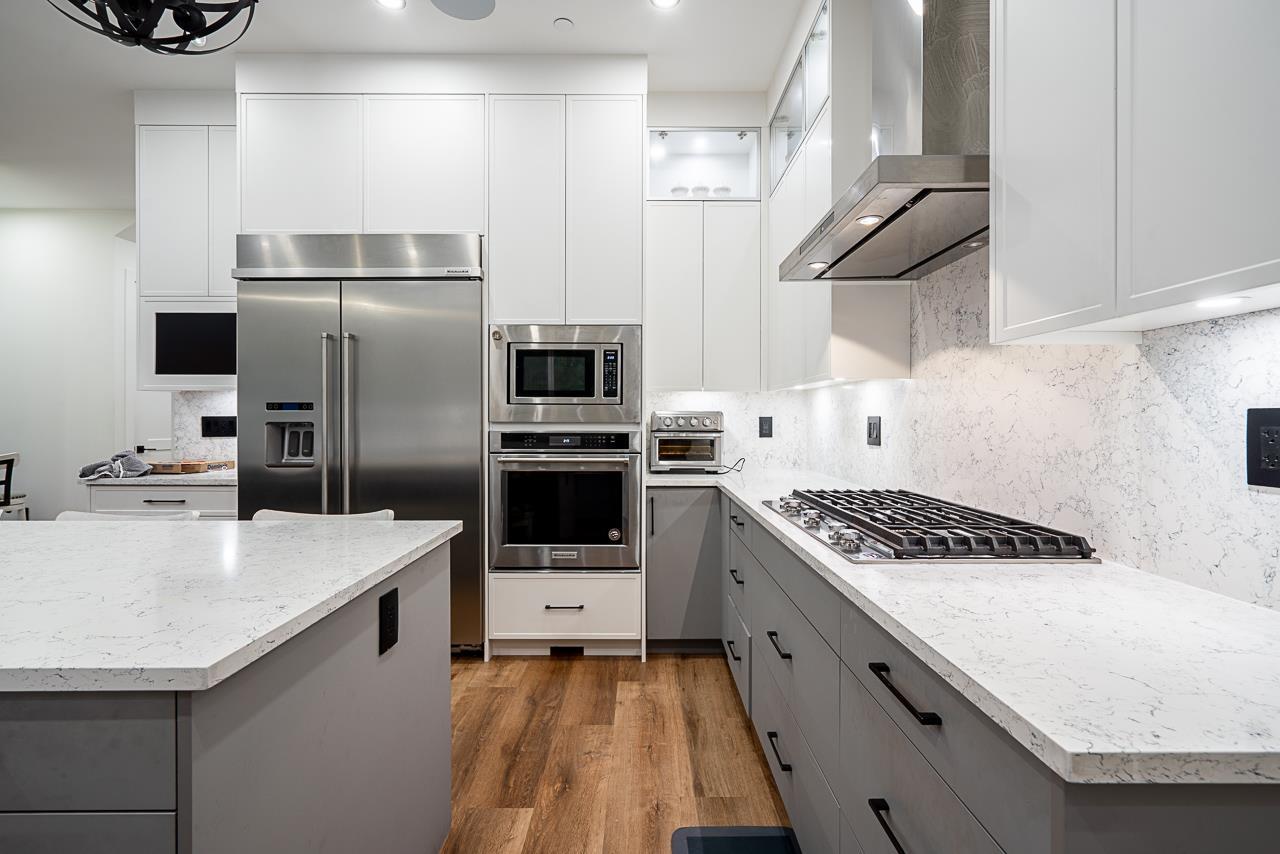 Rarely available! This exceptional custom-built home was designed by the owner as a personal residence and showcases premium upgrades throughout. Enjoy radiant in-floor heating, central A/C, and two beautiful custom oak staircases. The main floor features a bedroom with ensuite-perfect for guests or extended family. The gourmet kitchen offers fully integrated appliances, a gas cooktop, custom millwork, and a separate spice kitchen with a full stainless-steel appliance package. Smart-home ready and pre-wired for surround sound, this home features sleek black plumbing fixtures and a covered patio equipped for a gas BBQ and outdoor kitchen-ideal for entertaining. The lower level includes a 2-bedroom legal suite, perfect as a mortgage helper. Don't miss out on this home! (32502688)