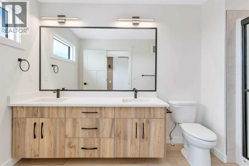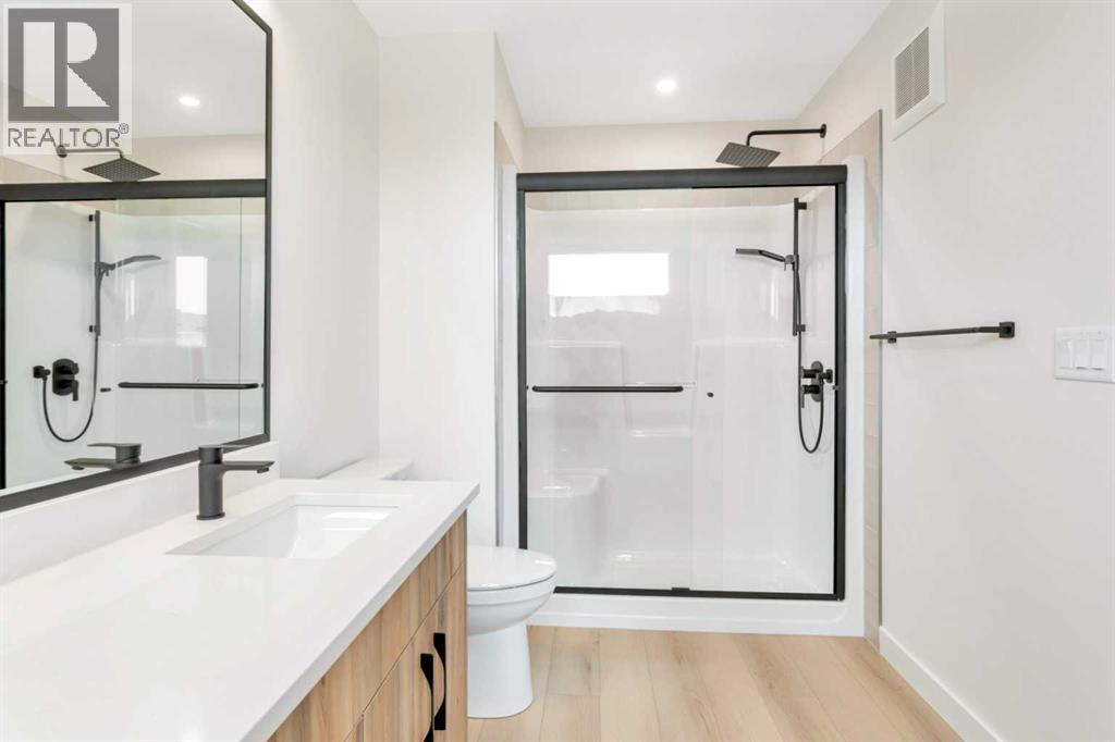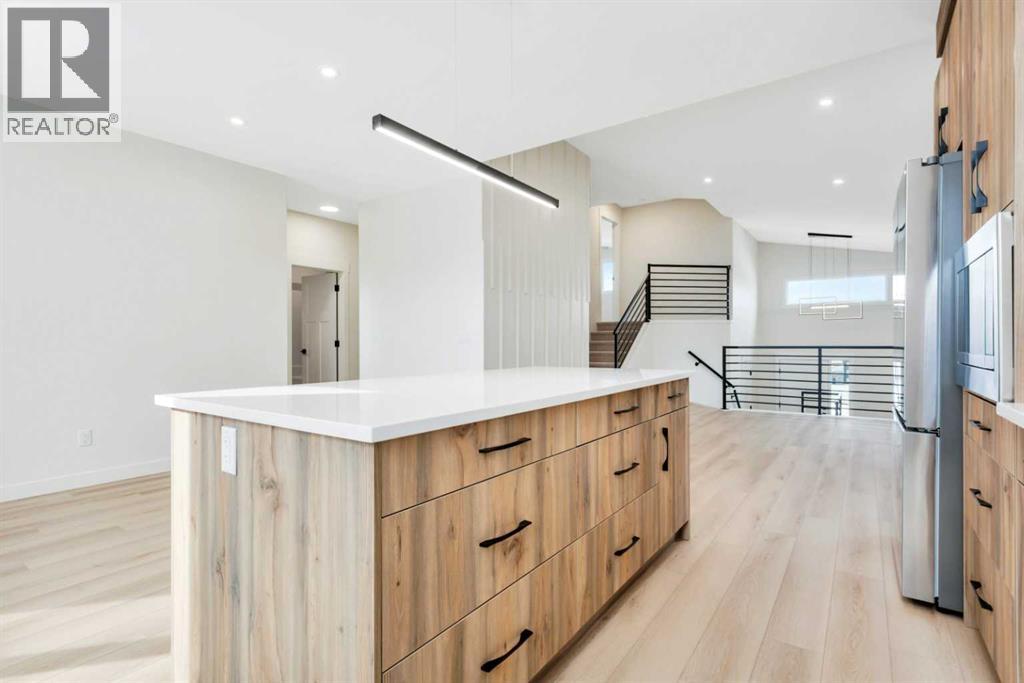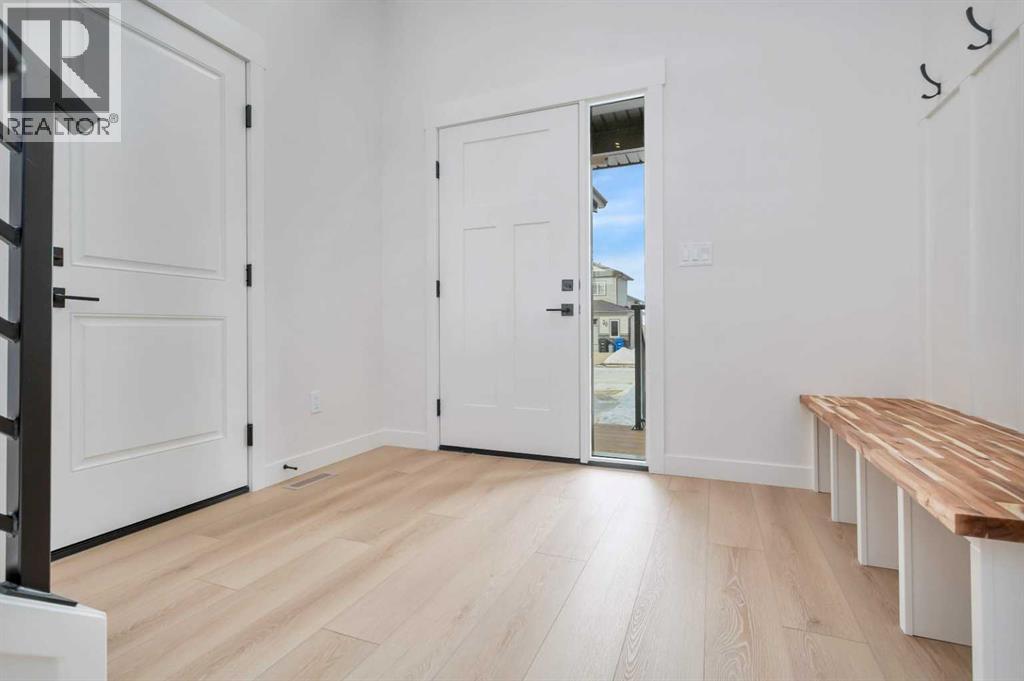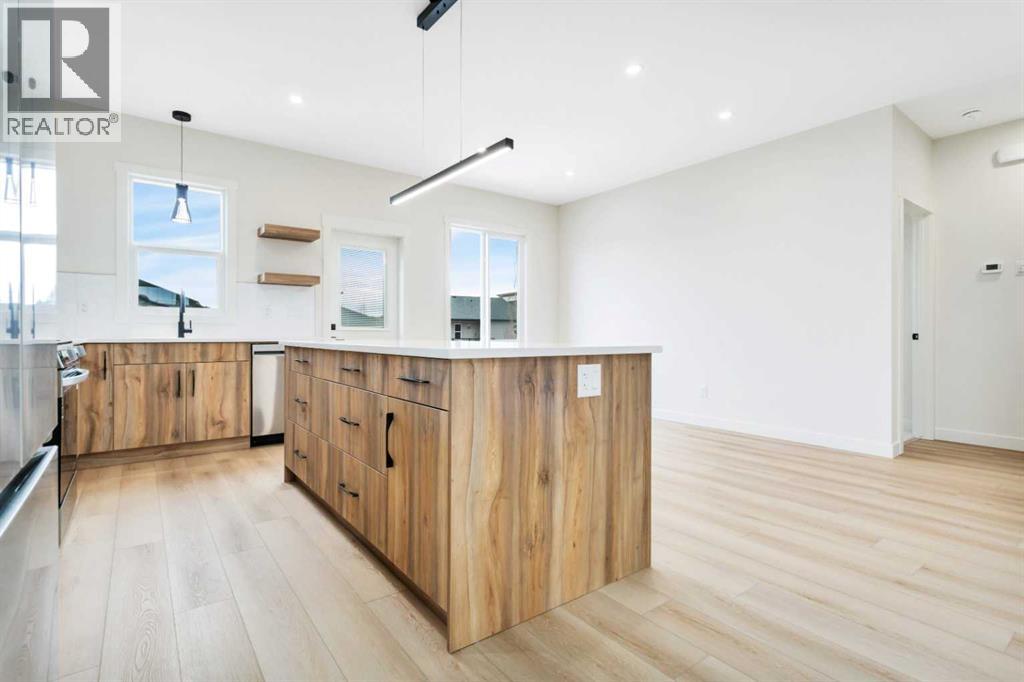 Welcome to 77 Maclean Close in McKay Ranch, Blackfalds. This 1,480 sq. ft. modified bi-level by Manhani Builders features a modern farmhouse design with quality finishes throughout. The open main floor offers a vaulted ceiling, large windows, and a spacious functional layout. The kitchen includes solid birch plywood cabinets, quartz countertops, and upgraded stainless steel appliances, along with main-floor laundry convenience. The primary bedroom includes a walk-in closet and a full ensuite. The 24 x 24 attached garage with an 18-foot door provides plenty of space. Enjoy the composite front porch and 12 x 10 back deck. The walk-out basement is roughed in for in-floor heat and future development. Backed by a 10-year Progressive Home Warranty. This home is ready for possession, with front landscaping to be completed in the spring. (31697743)
