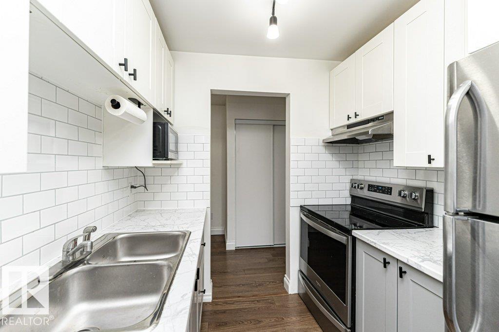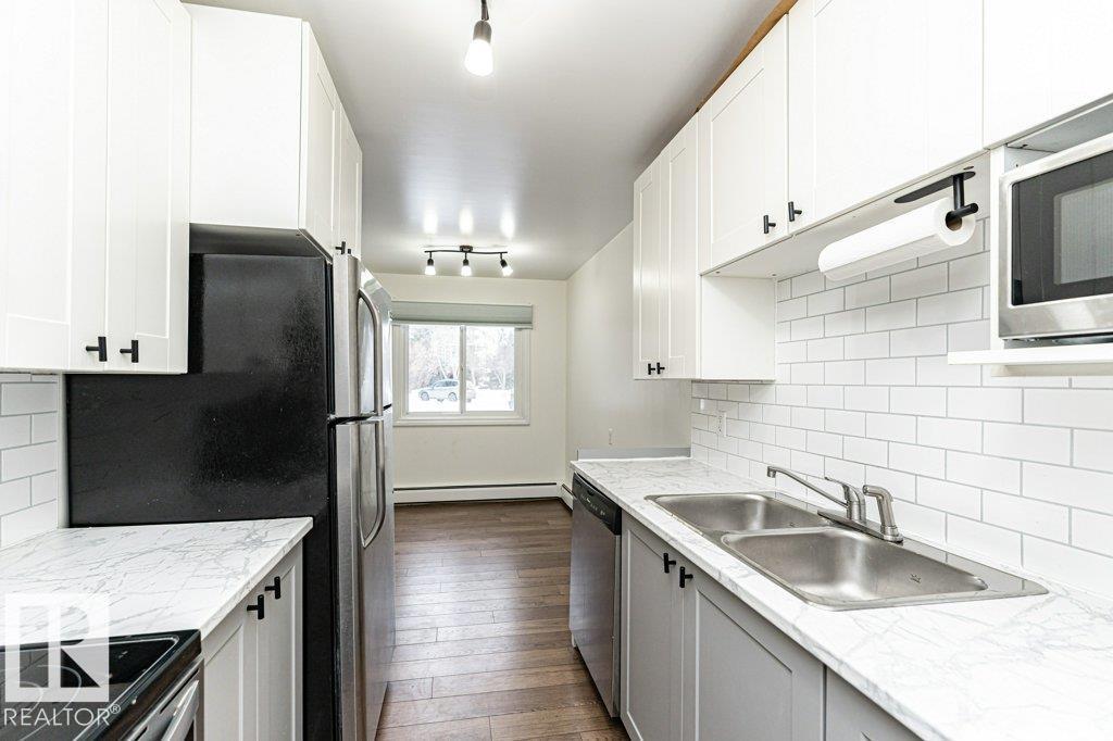 BEAUTIFULLY RENOVATED in Desirable Brander Gardens! This 804 sqft 2 Bed, 1 Bath includes many updates throughout such as stainless-steel appliances, tiled kitchen backsplash, laminate flooring, newer paint, plenty of storage and STUNNING 4pc Bath to name a few. This unit features 2 large bedrooms both with spacious closets, beautiful kitchen with plenty of cabinet and counter space, generous sized dining room, and a large open living room with access to the partially enclosed patio. Amazing location near the Edmonton River Valley and plenty of great schools & parks as well as quick easy access to Whitemud Drive, and every imaginable amenity. Ideal for the first time buyer or investor, Definite must see! (33883687)