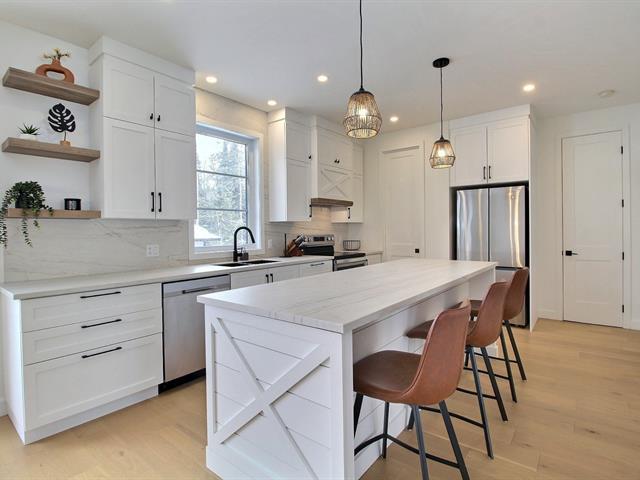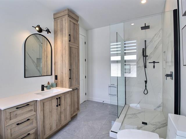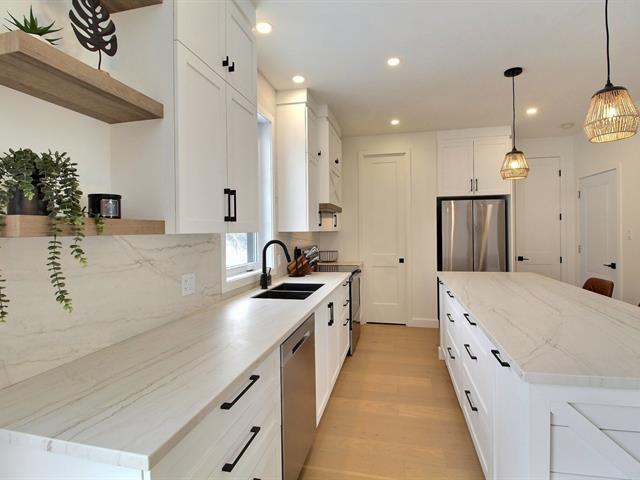 Absolument impeccable, coup de coeur assuré! Magnifique propriété de construction 2024 offrant 4 chambres, 2 salles de bains, foyer au gaz double face et plafond de plus de 9', conçue avec un souci du détail remarquable et des matériaux de qualité supérieure. La cuisine séduit par ses superbes comptoirs en Dekton & les salles de bains proposent des comptoirs en quartz. Vaste sous-sol entièrement aménagé. Terrain +/- 7750 pc, garage attaché et chauffé, remise & piscine. Située près de l'autoroute, des épiceries, des services et du centre-ville. Une propriété haut de gamme, clé en main, où chaque détail a été soigneusement sélectionné! (47363150)