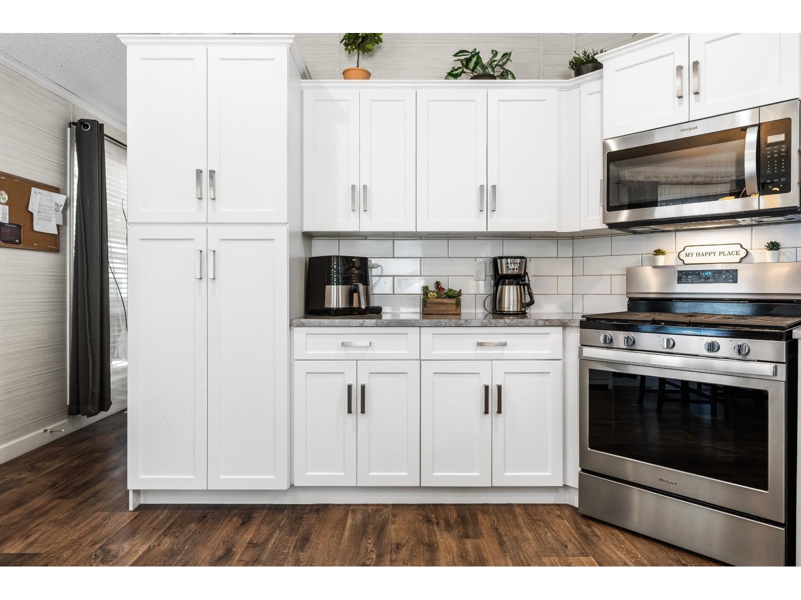 BEAUTIFUL, TURN KEY, OPEN-CONCEPT home, shows 10/10! Greeted w/ a LARGE COVERED deck inviting you for all year entertaining. Inside, you will be invited by a stunning white kitchen, S/S appliances, GAS stove, NEW dishwasher, OVERSIZED w/d; BACKSPLASH, lam flooring, A/C, PHANTOM screen. The 2 bed, 1 full bath w/ SOAKER TUB is perfect for relaxing in; laundry rm is strategically located hidden in the bathrm. Vaulted ceiling creates a spacious & airy home; natural light coming in from all windows. Outside you have a SHED to store all your extra items. Small dog, no cats, landscaping done, affordable pad fee $550/mo, BEAUTIFUL & GREAT park, furnace recently serviced. 5&10 Yr Home Warr. Close to everything. Age restricted park. Quick possession poss. Could consider trade. (32502641)