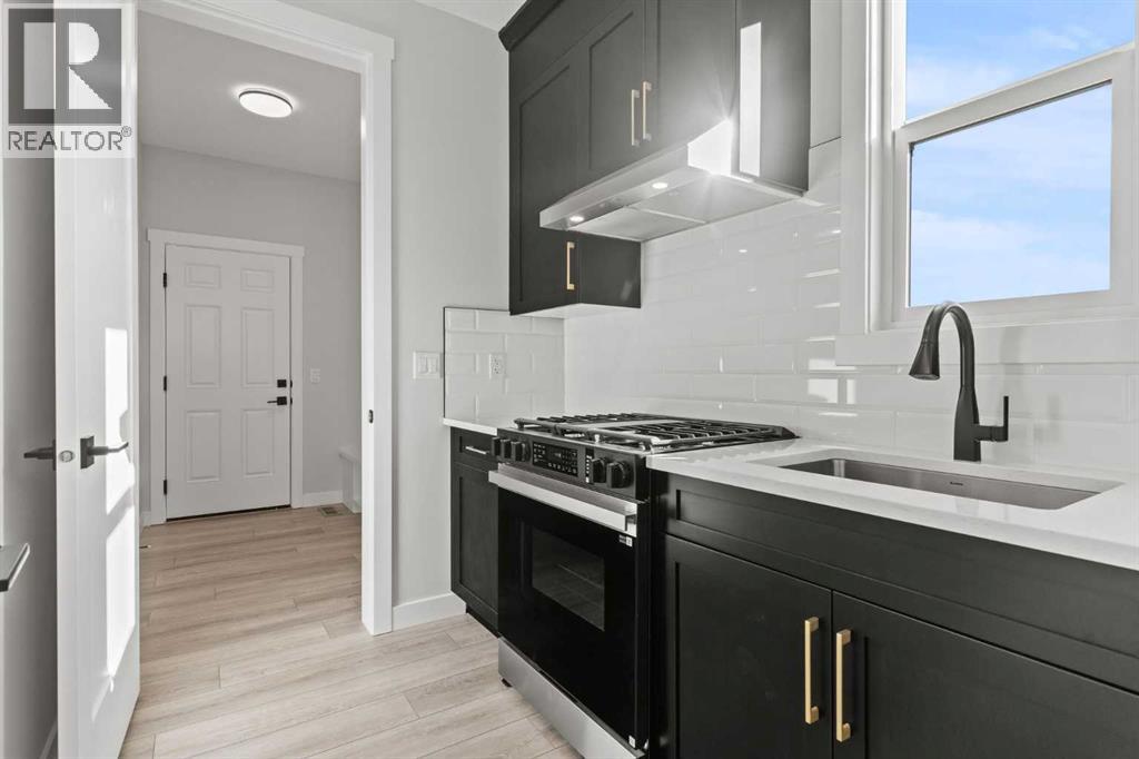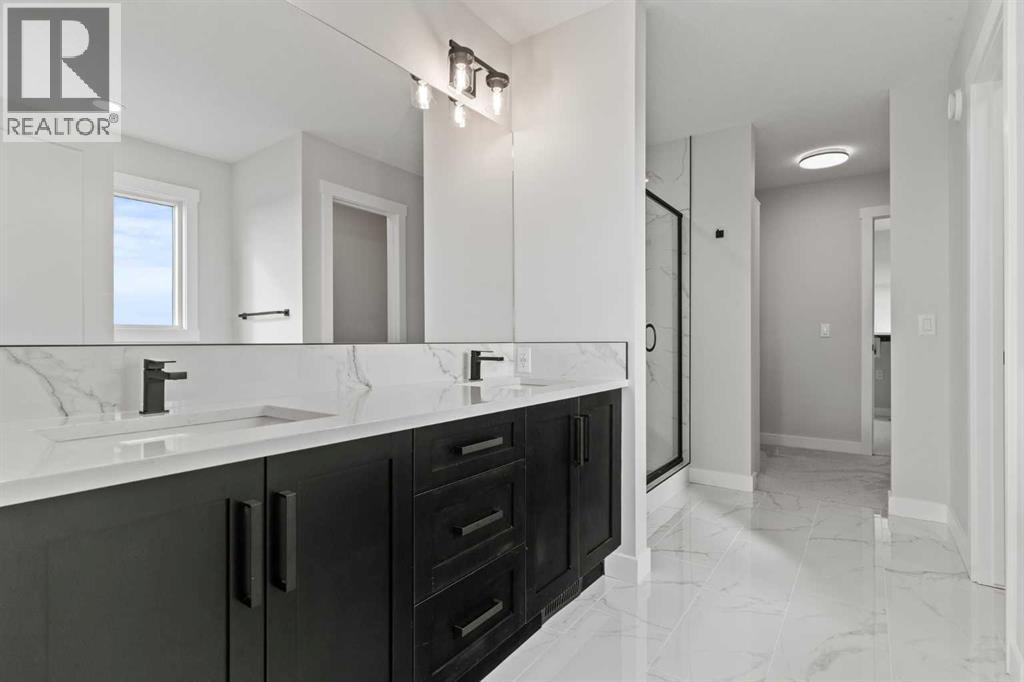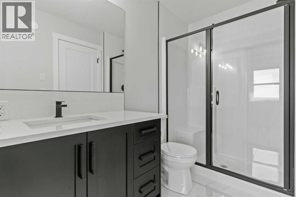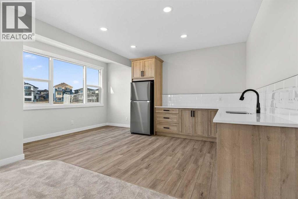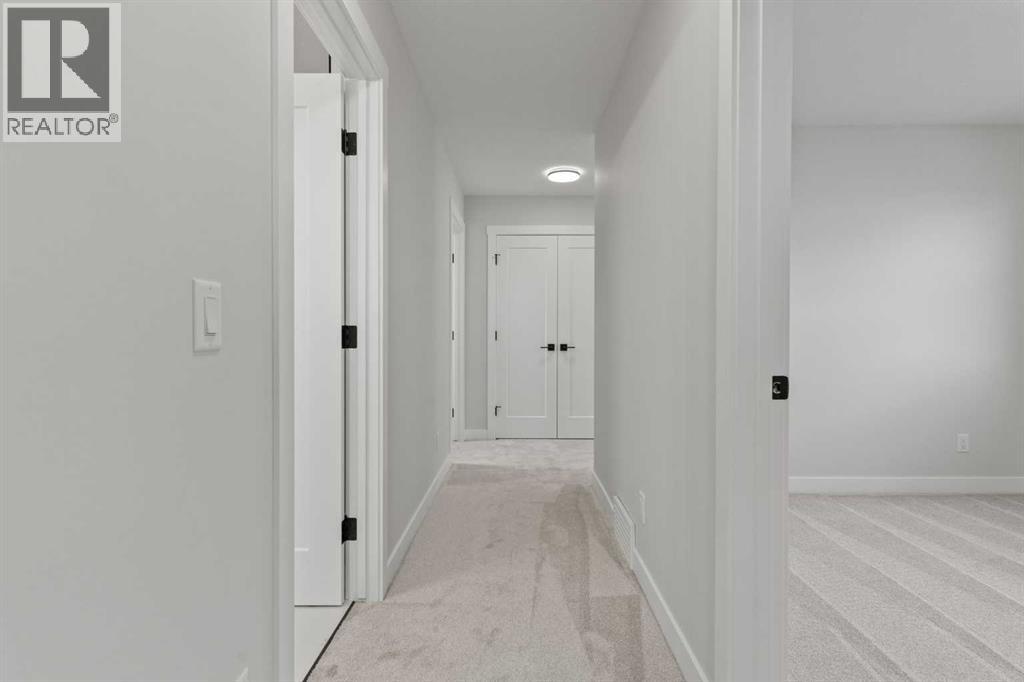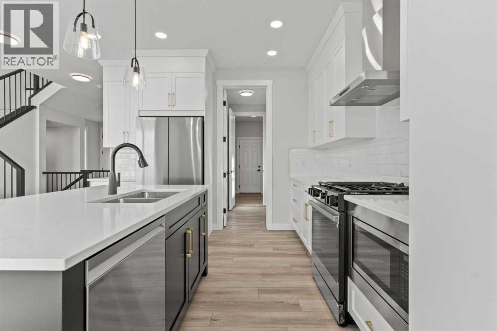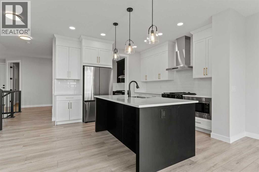Welcome to 302 Kinniburgh Loop – A Stunning 6-Bedroom Walkout by Golden Homes in Kinniburgh South!Built by 5-star builder Golden Homes, this brand new home offers 3,088 SQFT of total developed living space across three levels — backing directly onto a walking and biking path and a tranquil pond, with unobstructed mountain views that make every day feel like a retreat. A rare opportunity in one of Chestermere's most sought-after communities.From the curb, this home stands out with its upgraded elevation featuring natural timber beams and sleek black windows, delivering bold, contemporary character. Inside, the open-concept main floor flows seamlessly through the family room that is open to below, dining area, and gourmet kitchen, complete with a large quartz island, full-height painted cabinetry, stainless steel appliances, and premium finishes throughout. A dedicated spice kitchen keeps your main kitchen show-ready for everyday cooking and entertaining. The main floor is completed with true 9' ceilings, 8' doors, a mudroom, and an office/optional bedroom.Upstairs, the primary bedroom features a luxurious 5-piece ensuite with a freestanding tub, fully tiled shower with glass doors, double vanity, and private enclosed toilet — connecting directly to a spacious walk-in closet with built-in MDF shelving and the upper-level laundry room. Two additional bedrooms share a well-appointed Jack & Jill bathroom, while a generous bonus room — perfectly positioned to capture those mountain views — completes the upper level.The fully finished walkout basement is flooded with natural light through oversized triple-pane windows and a sliding glass door that opens to your backyard. Step onto the concrete patio and take in the pond, pathway, and mountains stretching across the horizon. The basement also offers two additional bedrooms, a 3-piece bathroom, a large wet bar, and a spacious recreation room — ideal for extended family or entertaining. The upper deck provides the perfect elevated vantage point to enjoy the same stunning scenery.As with every Golden Homes build, this home includes the signature Golden Standard features: true 9' ceilings on the main floor and basement, 8' interior doors on the main floor, triple-pane oversized windows, quartz countertops throughout, upgraded MDF shelving, full-height kitchen cabinets, tankless hot water heater, HRV system, gas line to the deck, solar panel rough-in, enclosed mechanical room, upgraded carpet underlay, smart home features, and premium landscaping with sod and a tree in the front yard.With its unbeatable location backing onto the pond and pathway, breathtaking mountain views, finished walkout basement, spice kitchen, and striking upgraded exterior, 302 Kinniburgh Loop is one of the finest offerings in Kinniburgh South.Photos are of the same model and may not reflect exact finishes. Specifications are subject to change without notice. (31698205)